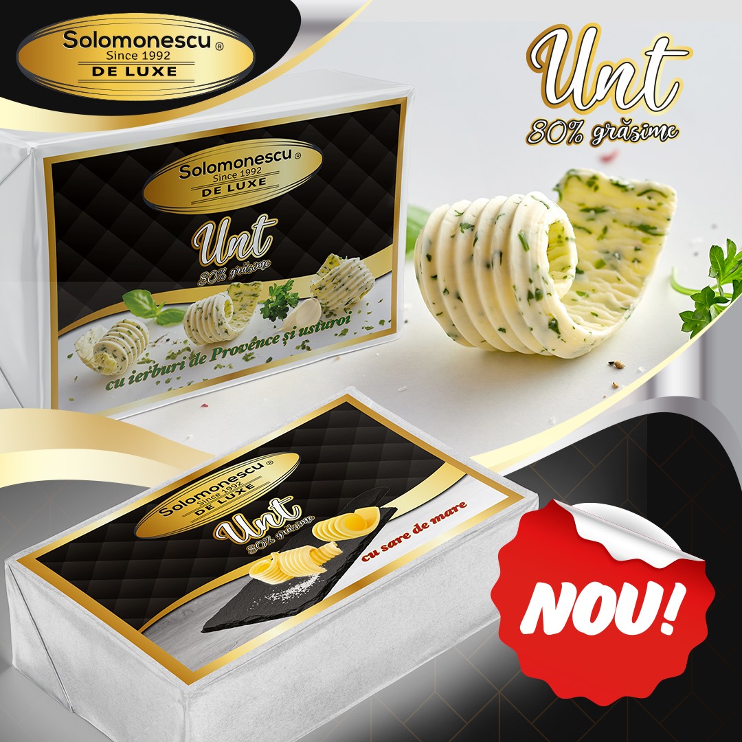 Un cunoscut producător de lactate din Botoșani a introdus pe piață două produse noi, adevărate delicatese. Este vorba de societatea comercială Lacto Solomonescu, cea care a lansat de curând, unt De luxe cu sare de mare și unt De luxe cu ierburi de provence și usturoi.