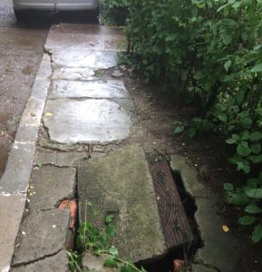Groapa se află pe un trotuar de pe strada Armoniei 12, de mai bine de o lună. Locatarii din zonă spun că au semnalat problema la Primăria Botoșani, însă nu s-a făcut nimic.