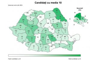 Județul Botoșani, alături de județul Iași, au cele mai multe note de 10 obținute la examenul de Bacalaureat din această sesiune, în afară de capitala București. În cele două județe sunt câte șapte medii de 10. Clujul, de exemplu, care în anii anteriori deținea recordul la medii de 10, acum are doar 3 elevi cu notă maximă. Bucureștiul are 21 de medii de 10.