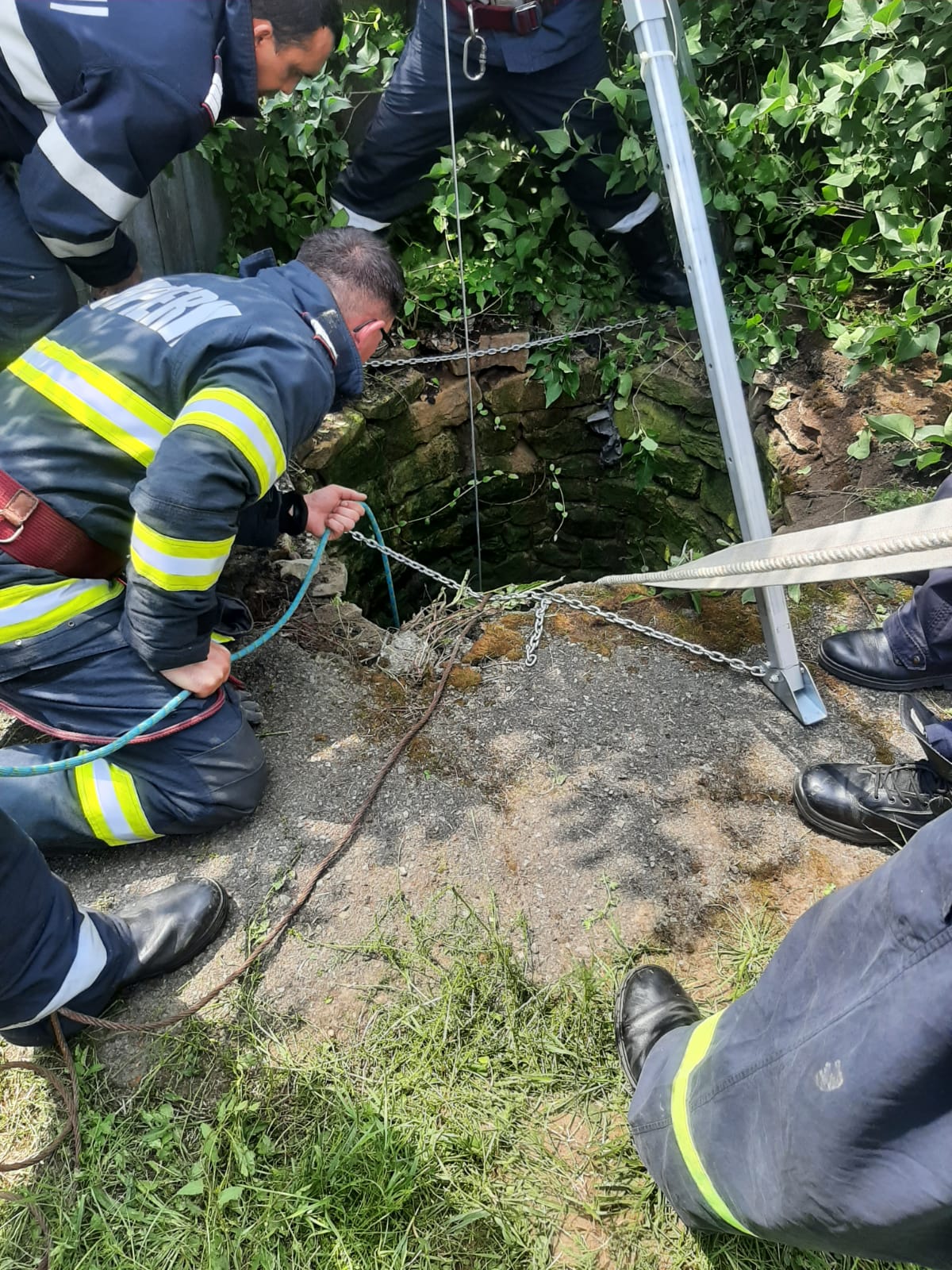 Chemați în ajutor, pompierii din cadrul Detașamentului de Pompieri Dorohoi au ajuns, în cel mai scurt timp, la fața locului. Au legat bovina cu mai multe furtunuri şi cu ajutorul unui buldoexcavator au reuşit să o aducă la suprafaţă. Aceasta nu a fost rănită.