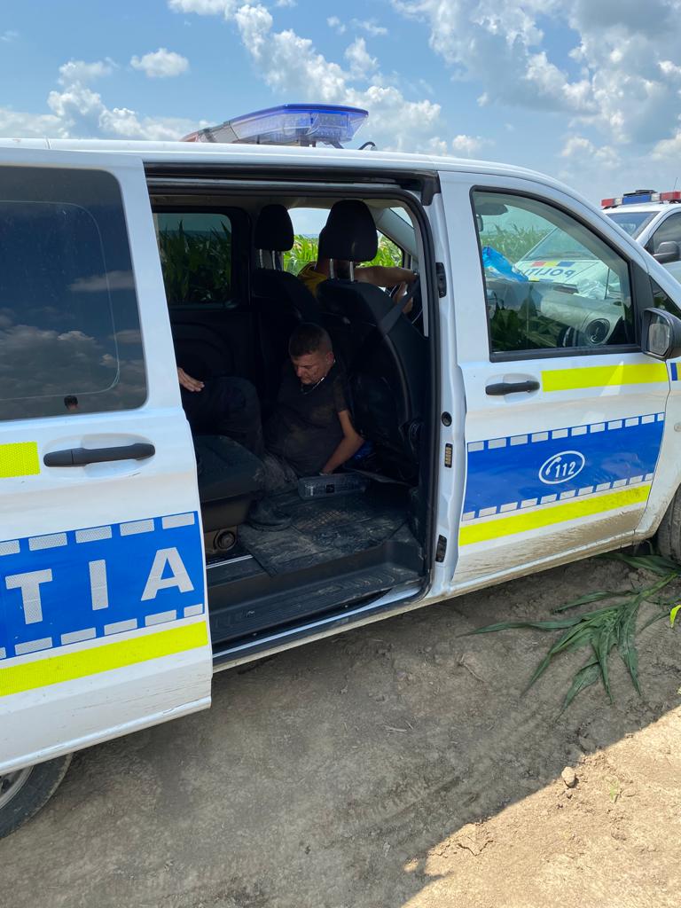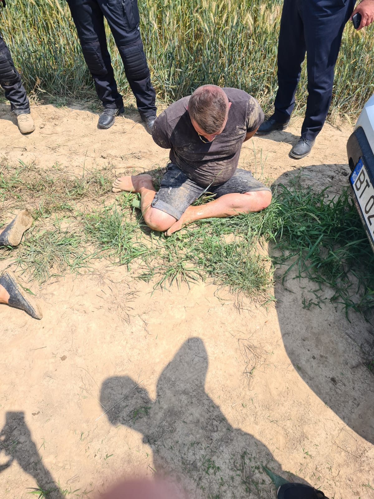Șeful Postului de Poliție Verești a plecat concomitent in urmarirea vehiculului cu masina personală reușind sa păstreze contactul vizual cu vehiculul urmarit si sa informeze in permanență fortele de sprijin despre traseul deplasarii. In jurul orei 12.00 masina urmărită a parasit drumul public, fiind urmărită de seful Postului de Poliție Verești si s-a îndepărtat pe un drum de pământ catre un lan de porumb. Văzând ca drumul se inchide, cei doi au abandonat mașina și au fugit in lanul de porumb. Intre timp, in urma informarii șefului de post, celelalte forte au ajuns în zona, un echipaj din cadrul SAS IPJ Botosani reperandu-i pe cei doi in lanul de porumb. Întrucât au incercat sa fuga au fost efectuate somațiile legale și focuri de avertisment in plan vertical, ulterior fiind imobilizați si retinuti.