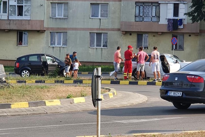 BMW-ul a lovit bordura și a ajuns pe spațiul verde, în timp ce autoturism Audi s-a rotit pe stradă. Din fericire, nu au fost victime.