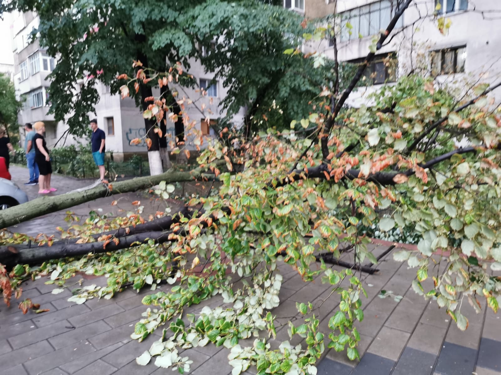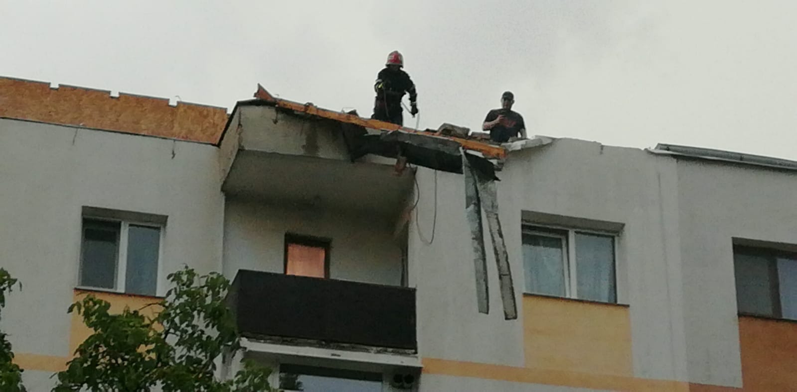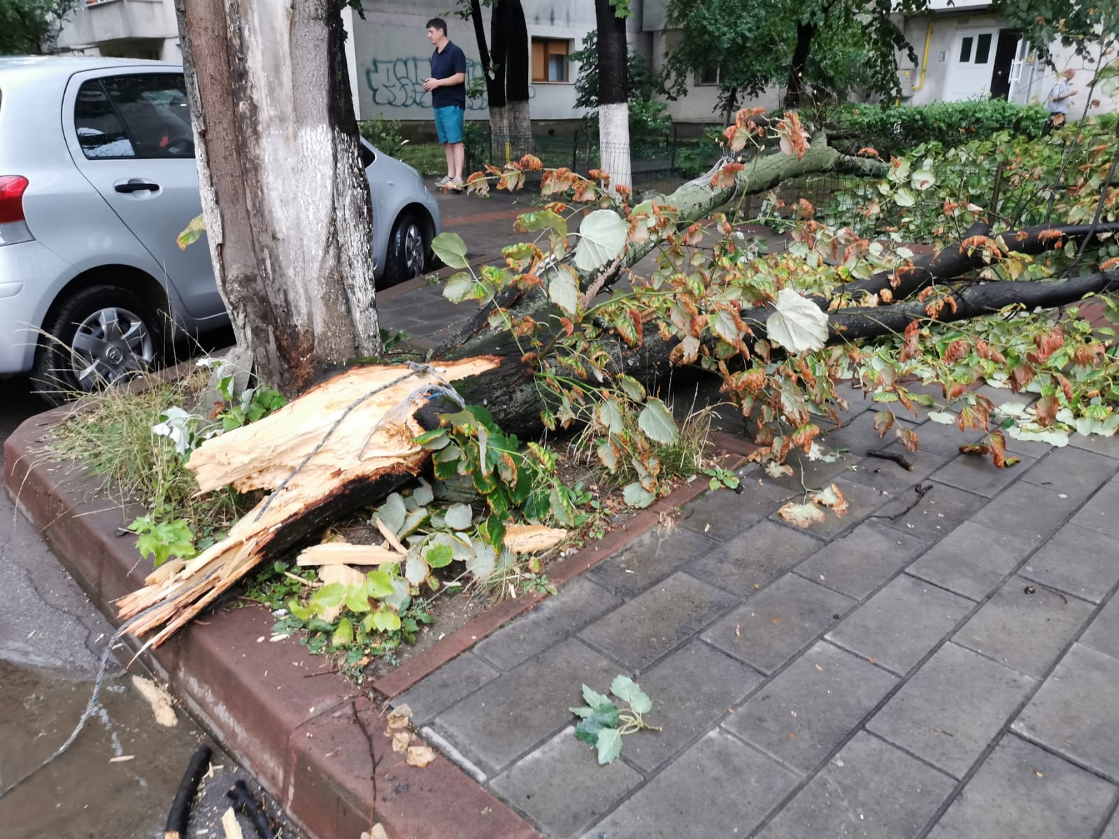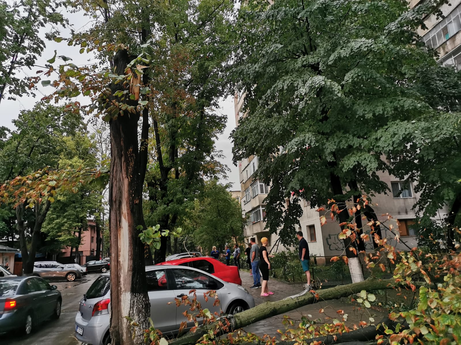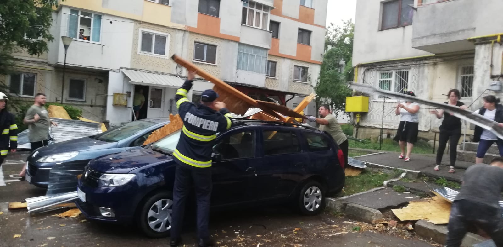 Furtuna a făcut dezastru, miercuri seară, la Botoșani! O șarpantă smulsă de vânt de pe un bloc și un copac doborât de vijelii au căzut peste niște mașini.
