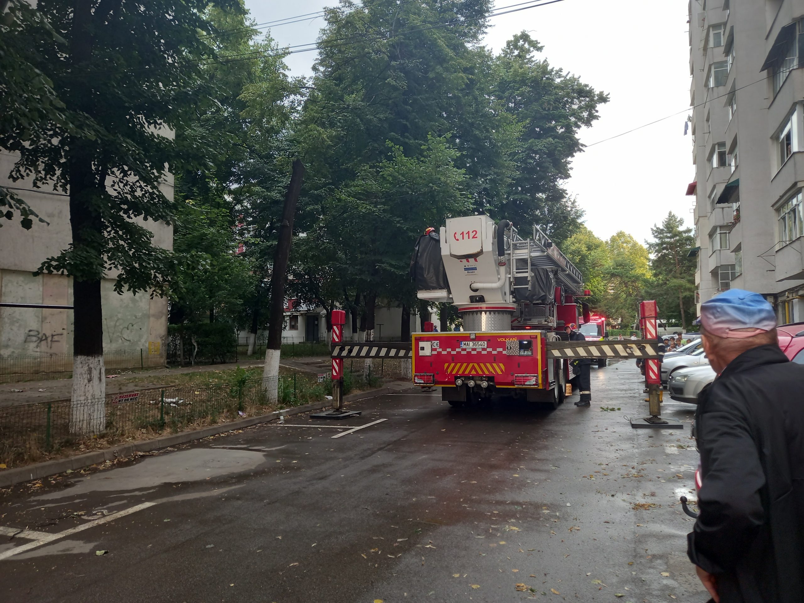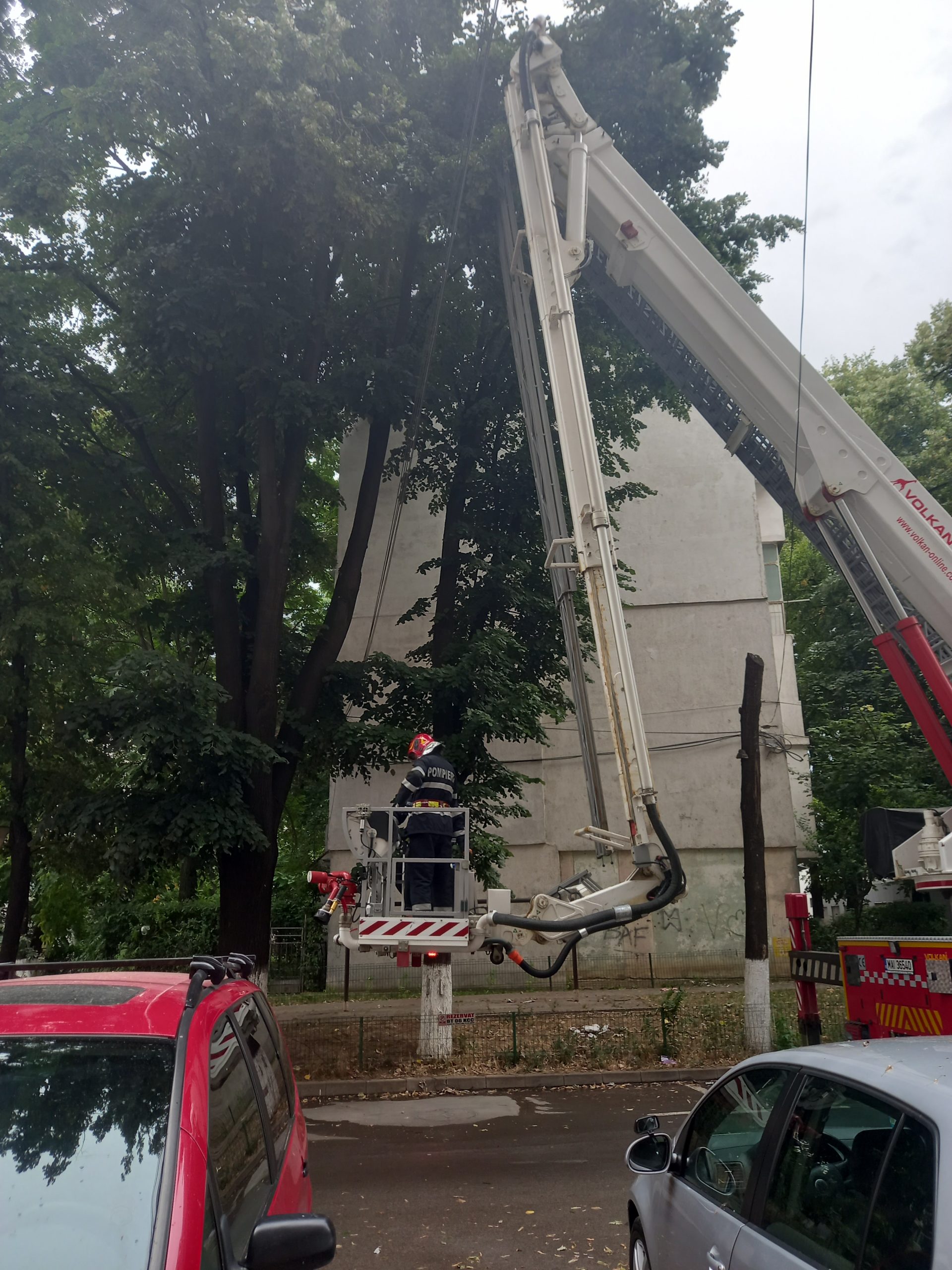 „Le-am spus că sunt și mașini parcate și mai ales că aici se joacă și mulți copii. Copacii nu au mai fost curățați de peste patru ani aici”, susține bărbatul care a cerut ajutorul pompierilor.
