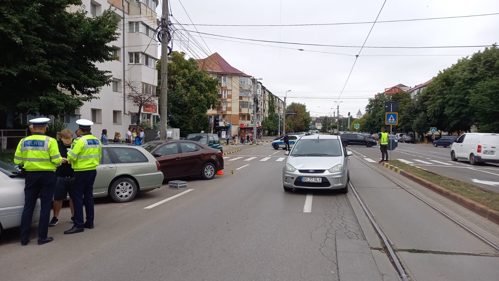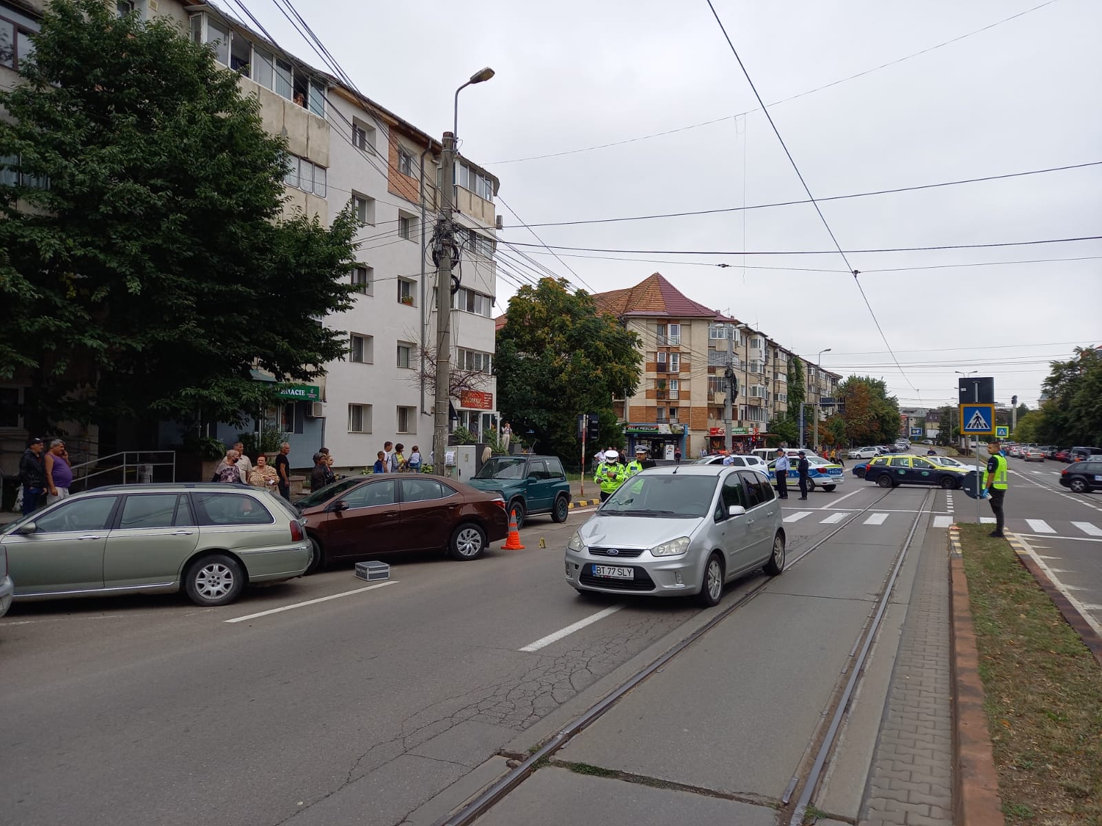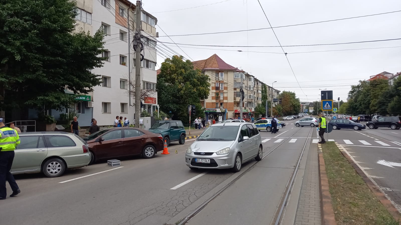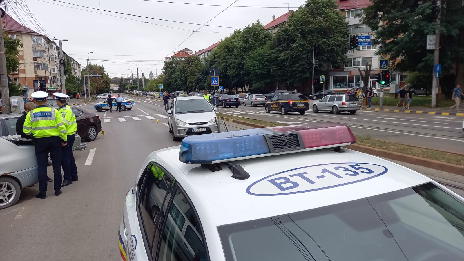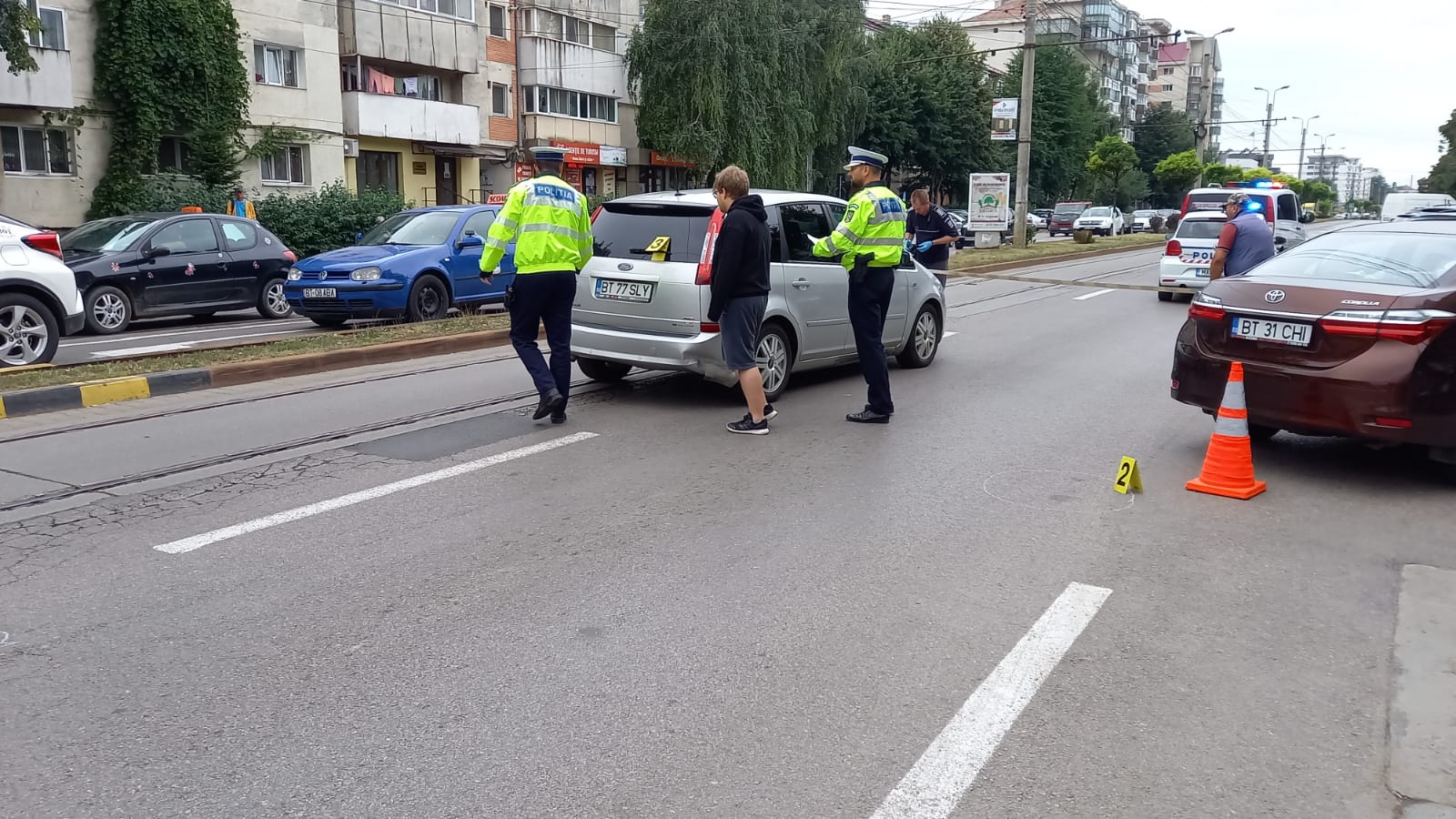Un accident rutier a avut loc, miercuri, în municipiul Botoșani. Un tânăr de 21 de ani circula cu mașina pe strada Octav Onicescu, iar la culoarea verde a semaforului a făcut stânga pe Calea Națională, însă nu a acordat prioritate de trecere unei femei, de 52 de ani, care traversa strada cu nepotul său.
