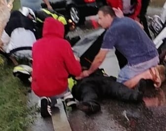 La locul accidentului de motocicletă, înainte de sosirea echipajelor, a oprit și plutonier adjutant-șef Radu Bîrleanu, aflat în timpul liber. Acesta, împreună cu fiul său, Iustinian, care este voluntar ISU Suceava, au asistat pe unul dintre cei doi răniți. Iustian a ținut umbrela, pentru a proteja victima de ploaia torențială, iar Radu a imobilizat capul rănitului, pentru protecția coloanei cervicale. Anterior, Bîrleanu a sunat în Dispeceratul ISU-SAJ, prin 112, și a dat toate detaliile necesare medicului coordonator pentru ca acesta să decidă asupra tipului de  echipaje care urmau a fi trimise la locul accidentului.