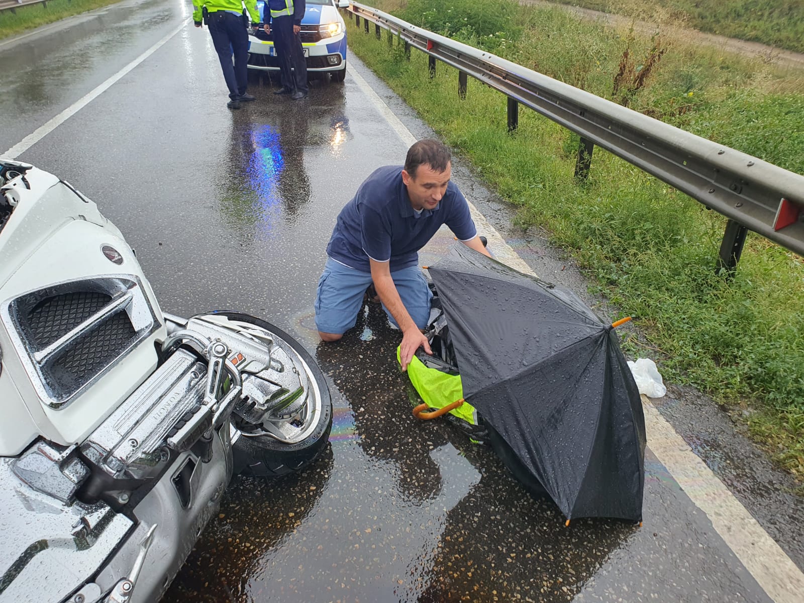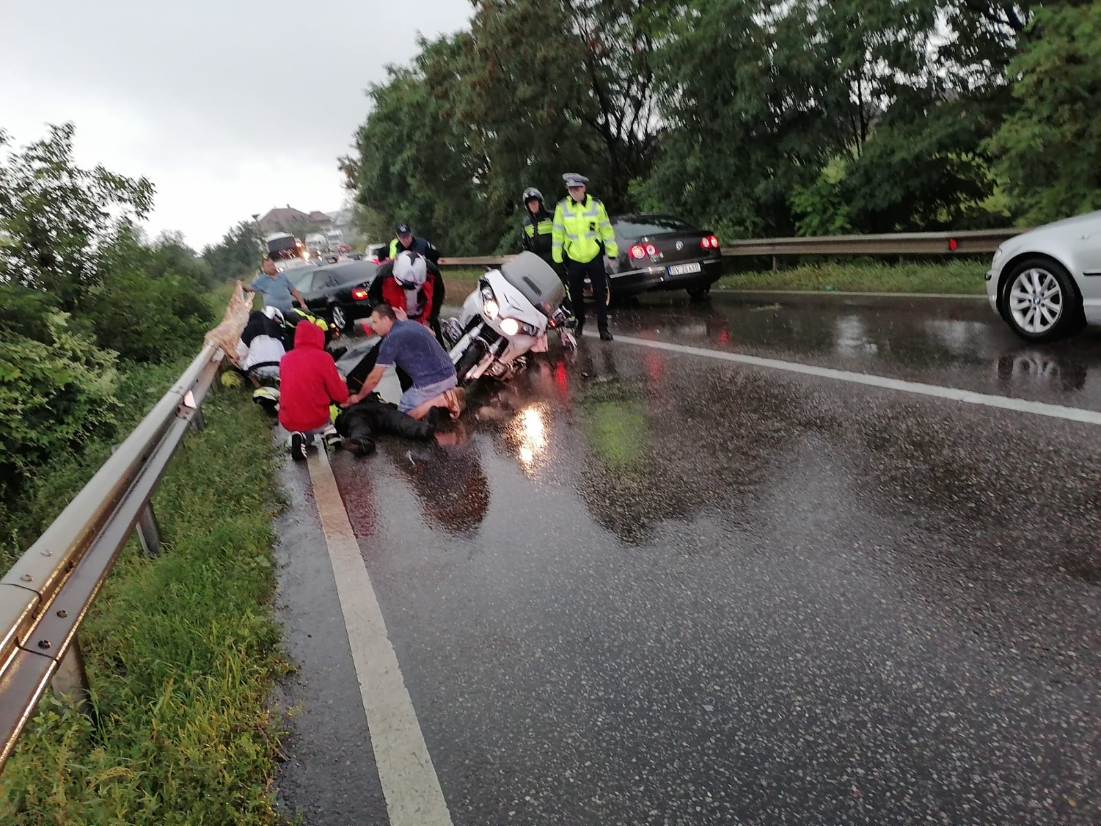Victimele au ajuns la spital. Conducătorul motocicletei circula în condiții de ploaie pe un carosabil ud, a pierdut controlul vehiculului și a lovit balustrada drumului național. Ambii pasageri ai motocicletei au fost răniți, fiind transportați la spital.