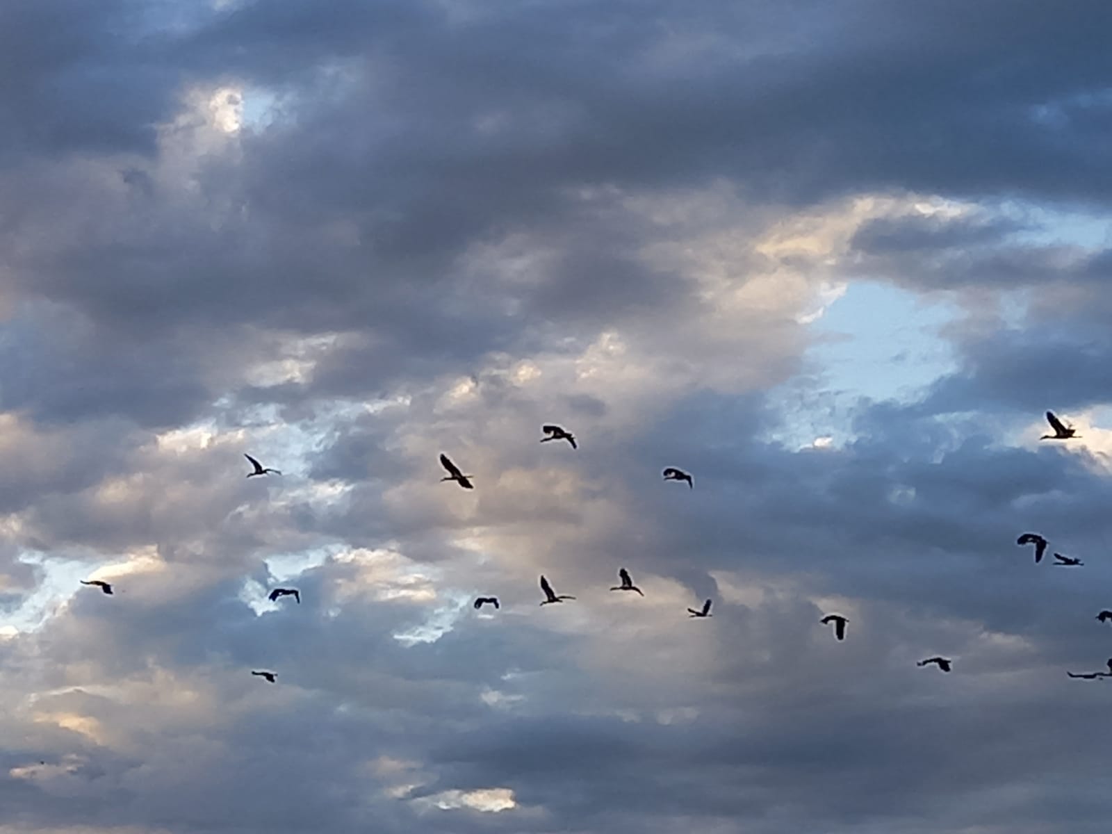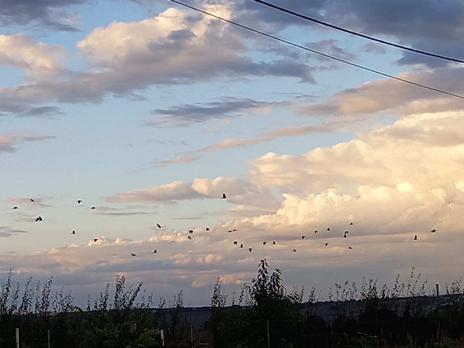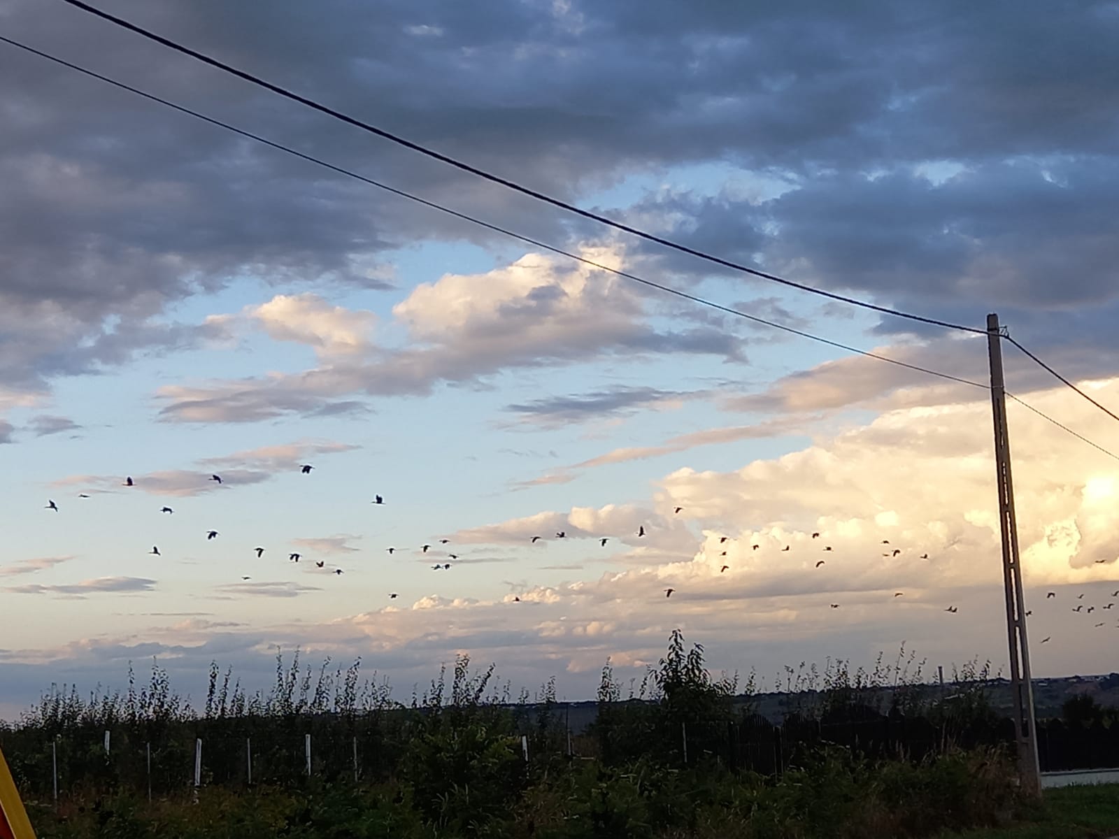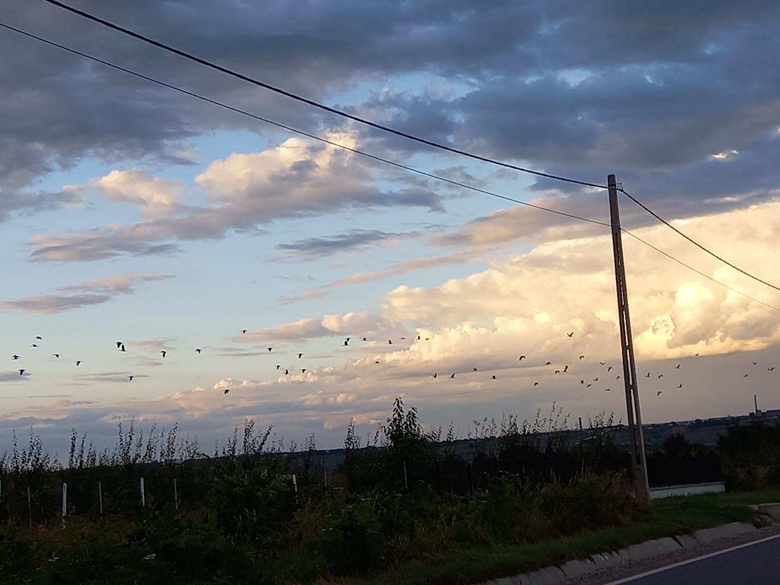 Imagini superbe surprinse, luni seară, la Botoșani, în zona Agafton. Un cârd cu zeci de berze a brăzdat cerul, spre fascinația trecătorilor.