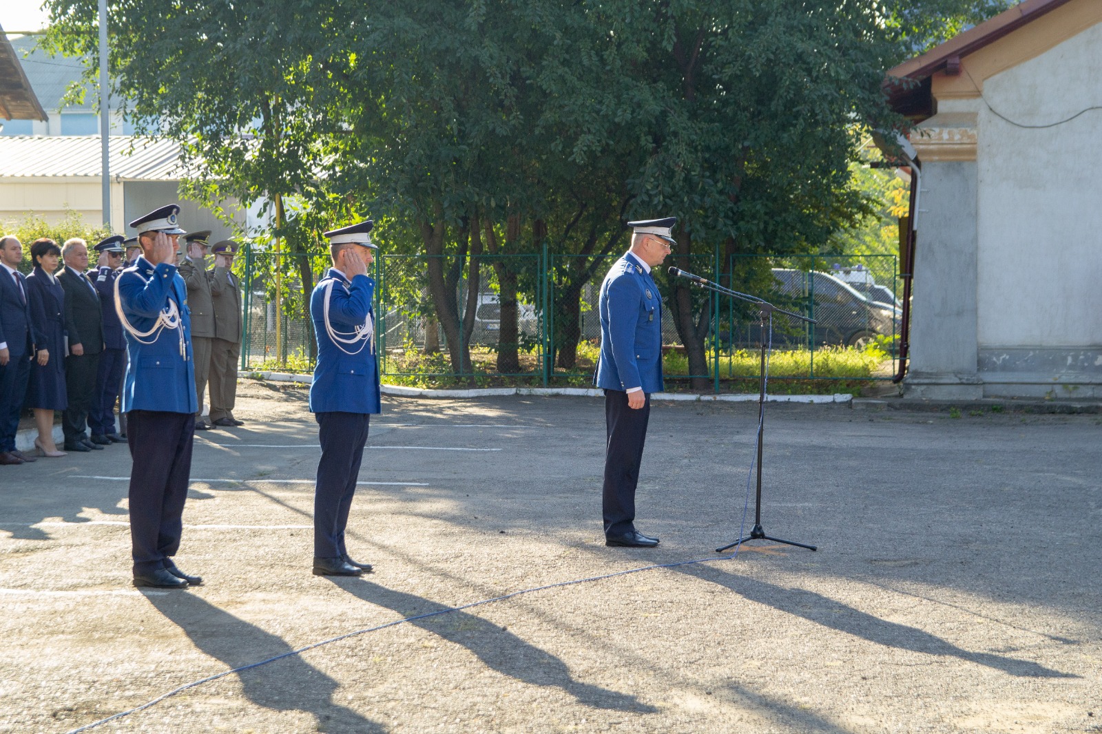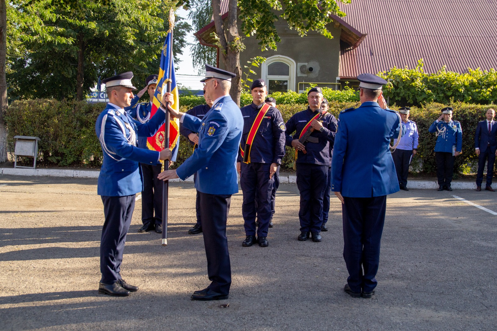 Ceremonia militară de predare-primire a Drapelului de Luptă şi a comenzii unităţii s-a desfășurat astăzi, 10 septembrie, în prezenţa colonelului Mastan Alin-Ionel - inspector general al Jandarmeriei Române, a prefectului Dan Nechifor, a Doinei Federovici - președintele Consiliului Județean Botoșani, a primarului Cosmin Andrei, precum și a șefilor instituțiilor publice cu care inspectoratul cooperează în executarea misiunilor.