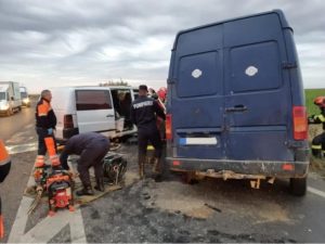 Patru persoane au murit într-un accident produs în județul Ialomița, miercuri dimineaţă. Alte două victime sunt rănite și au fost preluate de elicopter. Accidentul s-a produs pe DN 2, între localitățile Movilița și Sinești. Două autoutilitare și un autoturism s-au ciocnit.