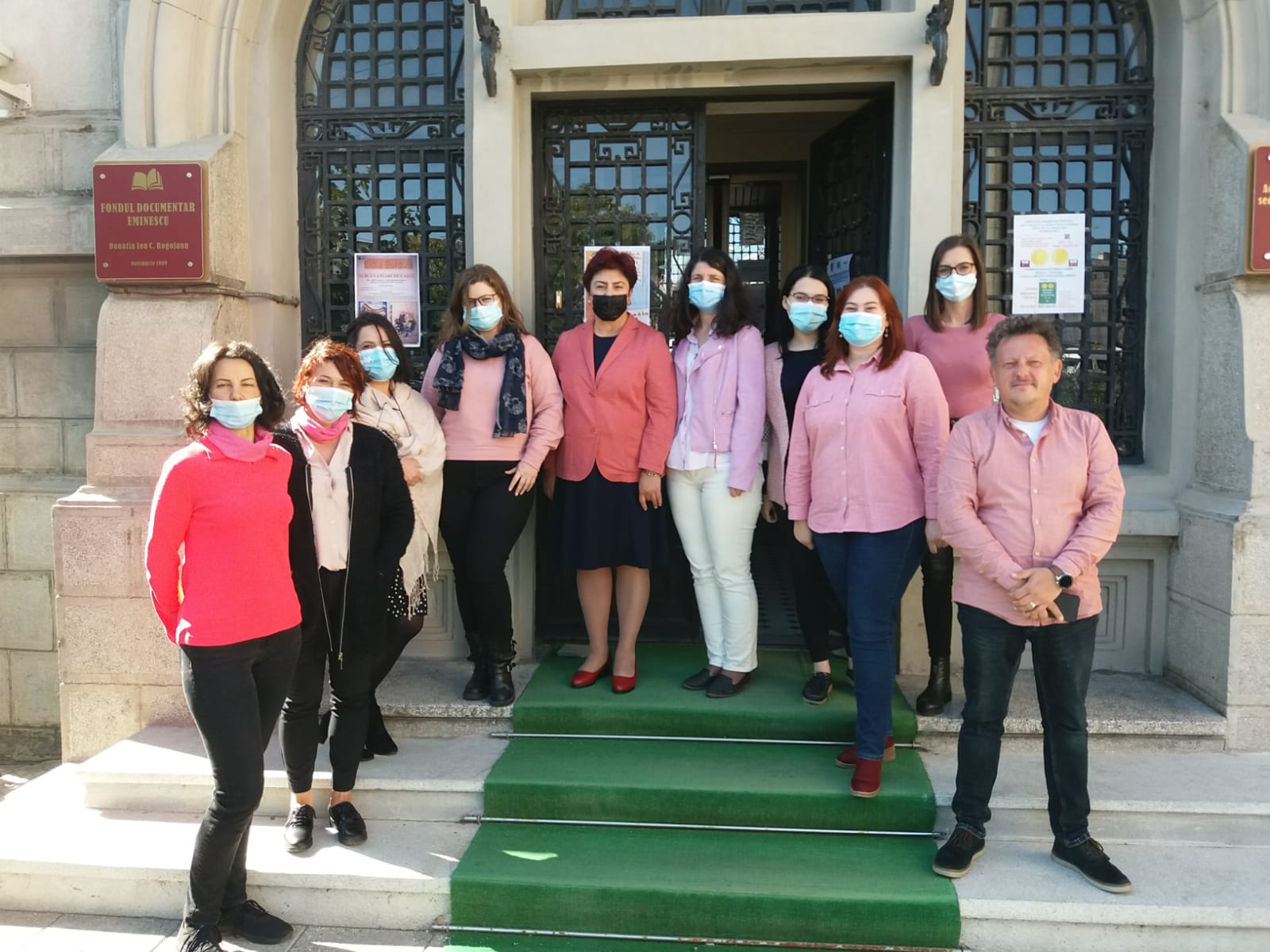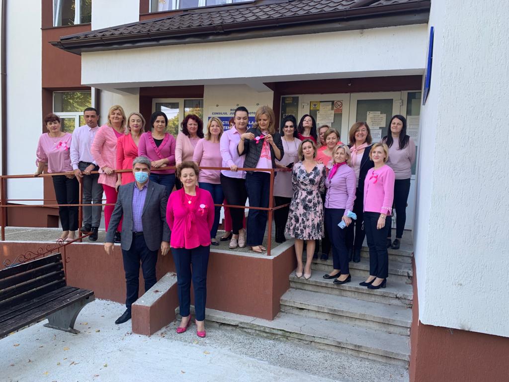 Ziua Internațională a luptei împotriva cancerului de sân a fost marcată astăzi de zeci de angajați ai Consiliului Județean Botoșani și ai instituțiilor subordonate, precum Biblioteca Județeană "Mihai Eminescu", Centrul Național de Studii "Mihai Eminescu" - Ipotești, Direcția Generală de Asistență Socială și Protecția Copilului, precum și ai Spitalului Județean de Urgență "Mavromati", care au venit la locul de muncă purtând o haină de culoare roz sau o o eșarfă de această culoare.