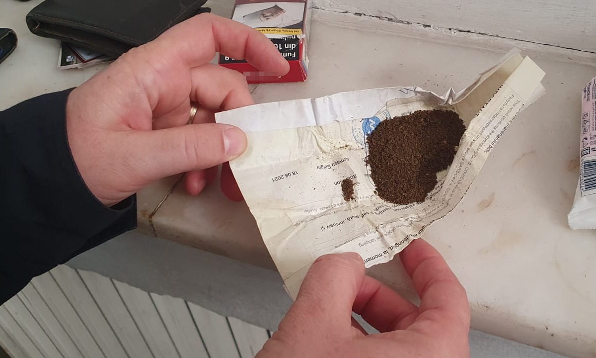”În baza profilului de risc, s-a procedat la efectuarea unui control amănunţit asupra persoanei împreună cu organele vamale, ocazie cu care a fost descoperită, în rucsacul acesteia, ascunsă într-o cutie de pantofi, o cantitatea de aproximativ 10 grame de substanță vegetală, de culoare verde-oliv, cu miros înțepător, ambalată in folie de aluminiu, substanţă posibil a fi marijuana. Ulterior, în urma controlului bagajului de cală, a fost descoperit și dispozitivul de mărunțit”, a precizat Tatiana Radu.