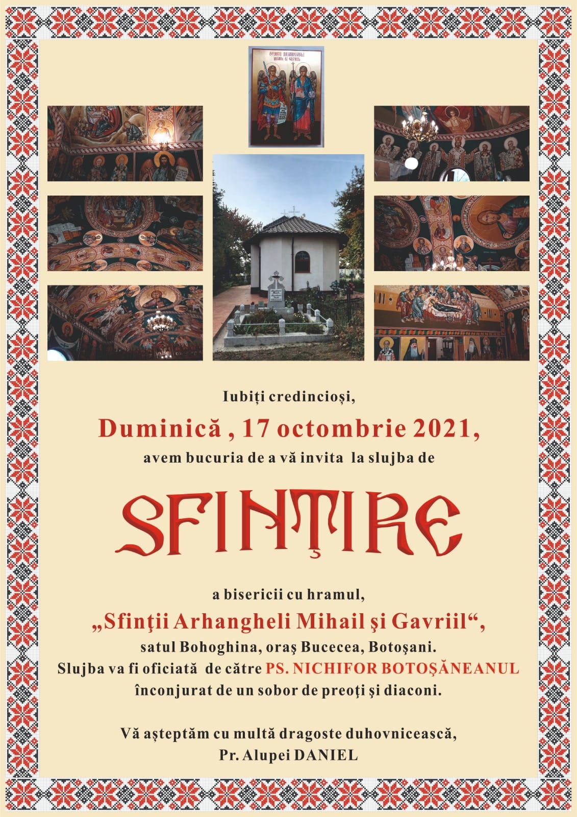 Biserica Sf. Arhangheli Mihail și Gavril din satul Bohoghina din Bucecea va fi sfințită, iar credincioșii vor putea trece prin Sfântul Altar.