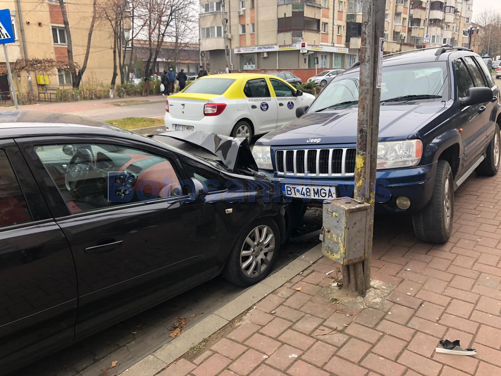 Patru mașini au fost implicate într-un accident rutier care a avut loc, luni, în județul Botoșani. Evenimentul rutier a avut loc pe Bulevardul Victoriei din Dorohoi, la intersecția cu strada Duzilor, în fața Bisericii Sf. Vineri. Șoferul unui autoturism marca Jeep, cu volan pe dreapta, a rămas fără frâne și a pierdut controlul mașinii.
