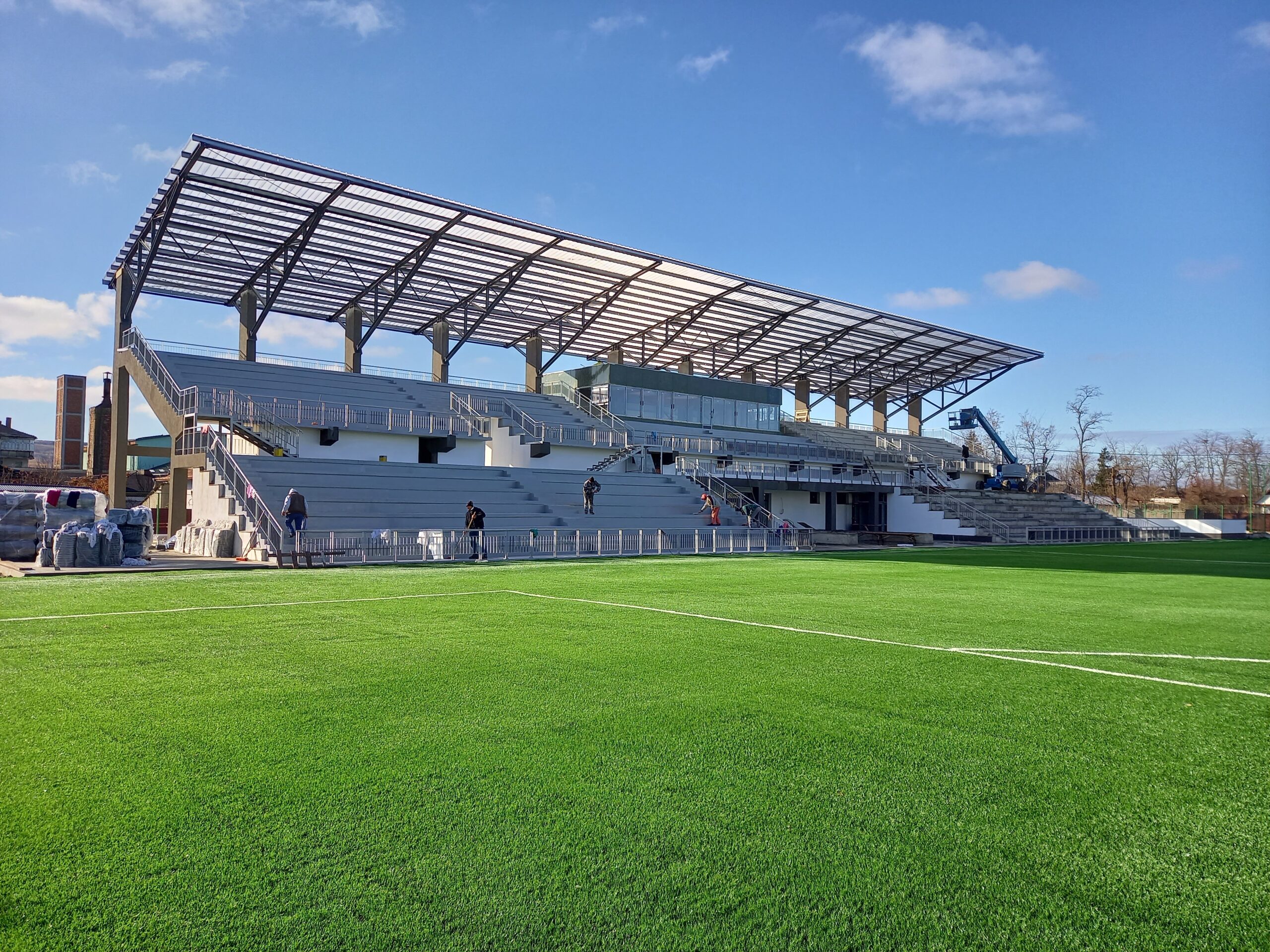 Complexul sportiv, care urmează a fi inaugurată la începutul anului viitor, a fost construită pe locul fostului stadion orășenesc din Săveni.