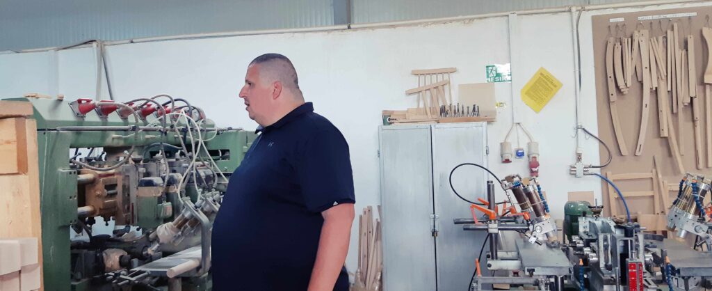 Ei bine, România avea multe, multe fabrici de scaune. Acum mai sunt câteva, în jur de cinci sau șase. Una dintre ele e la Botoșani. Este interesant să vezi „viitorul scaun”, adică o stivă de picioare și ceva mai încolo una de spătare. Dar și mai interesant e patronul, Vlad Dobrincu. Un munte de om care se prezintă drept mic industriaș. Așa scrie pe cartea de vizită. Și pe site-ul lor.