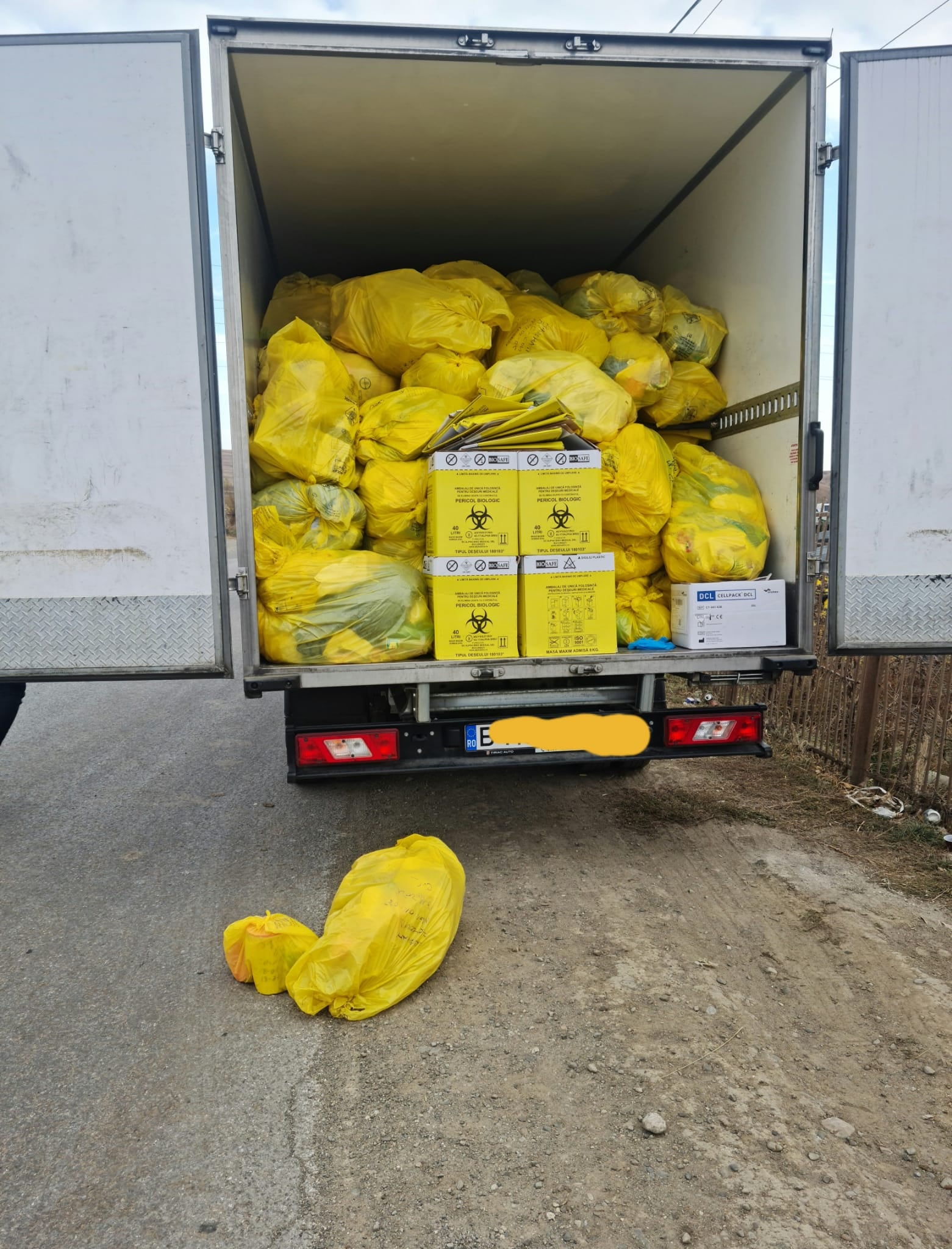 Aceștia au constatat că autospeciala „nu era marcată şi inscripţionată cu datele de identificare ale societăţii transportatoare pe ambele părţi laterale, activitatea prestată „Transport deşeuri periculoase rezultate din activitatea medicală”, pictograma „Pericol biologic”, nu deține sisteme de asigurare împotriva răspândirii deşeurilor periculoase în mediu în caz de accident, nu deține o trusă sau un minicompartiment ce conţine saci din plastic, echipament de protecţie, echipamente de curăţenie, dezinfecţie,nu au fost identificate containere din plastic cu capac, tip europubelă, în care sunt depozitate deşeurile ambalate în timpul transportului, în condiţii de siguranţă”.