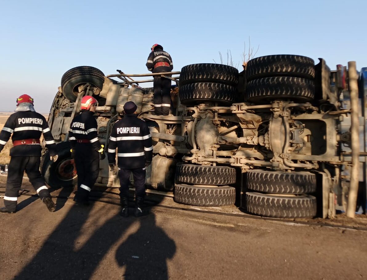 Un bărbat, în vârstă de 42 ani, a avut nevoie de îngrijiri medicale, joi, după ce camionul pe care îl conducea s-a răsturnat. Accidentul a avut loc la ieșirea din comuna Văculești.