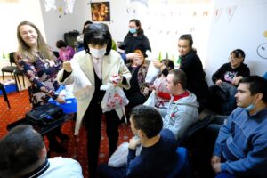 I-au vizitat pe cei 14 tineri cu vârste între 17 și 24 de ani, acolo unde, cu ajutorul specialiștilor, urmează programe terapeutice de recuperare, și le-au dus darurile de care aveau cea mai mare nevoie: zeci de pachete cu jocuri educative, alese cu grijă la indicațiile psihologului din unitate, extrem de utile pentru terapia continuă pe care o urmează în acest centru,  însoțite de dulciuri și fructe.