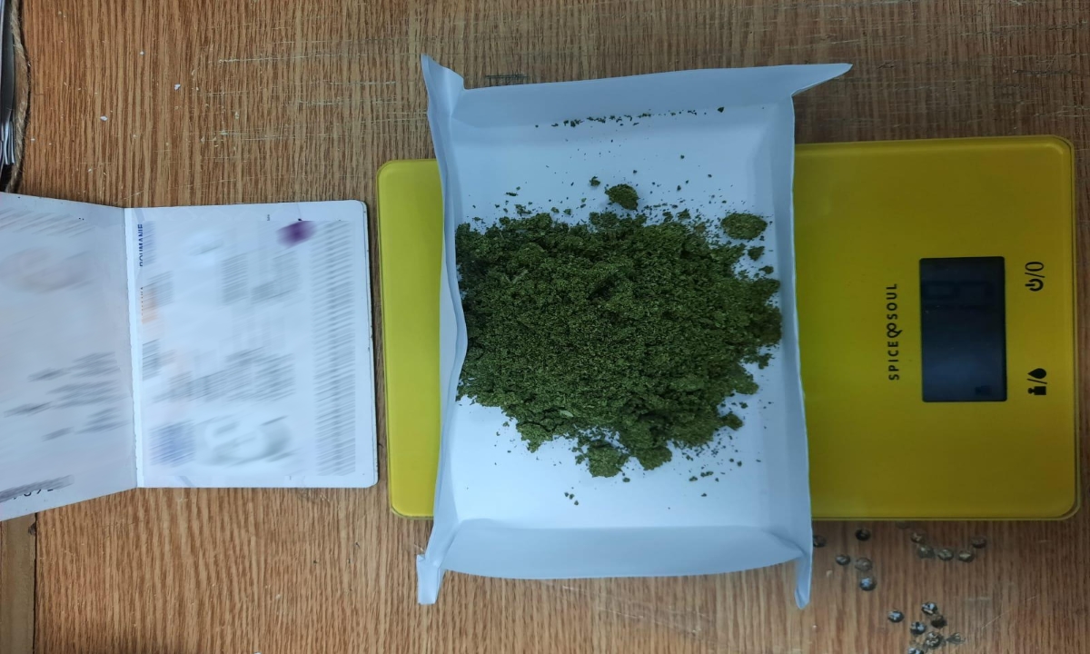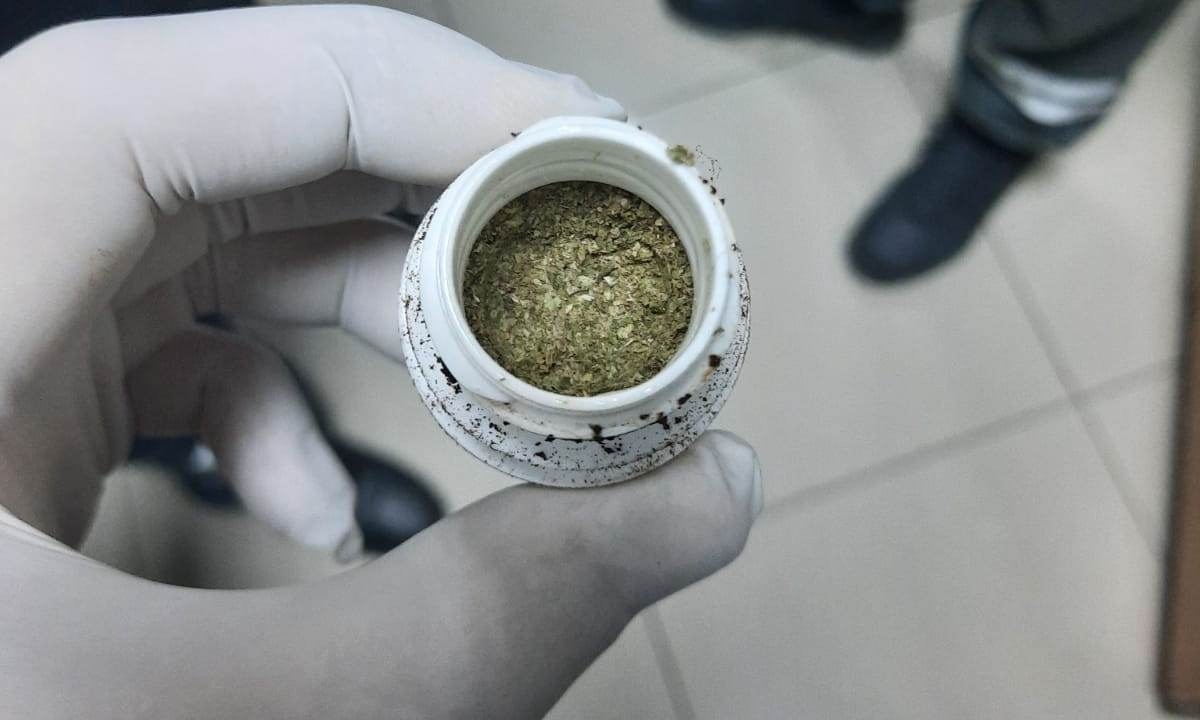 În urma unui control, a fost descoperită asupra tânărului, ascunsă într-un flacon de medicamente, o cantitate de substanță vegetală, de culoare verde-oliv, cu miros înțepător, substanţă susceptibilă a face parte din categoria drogurilor de risc (marijuana).