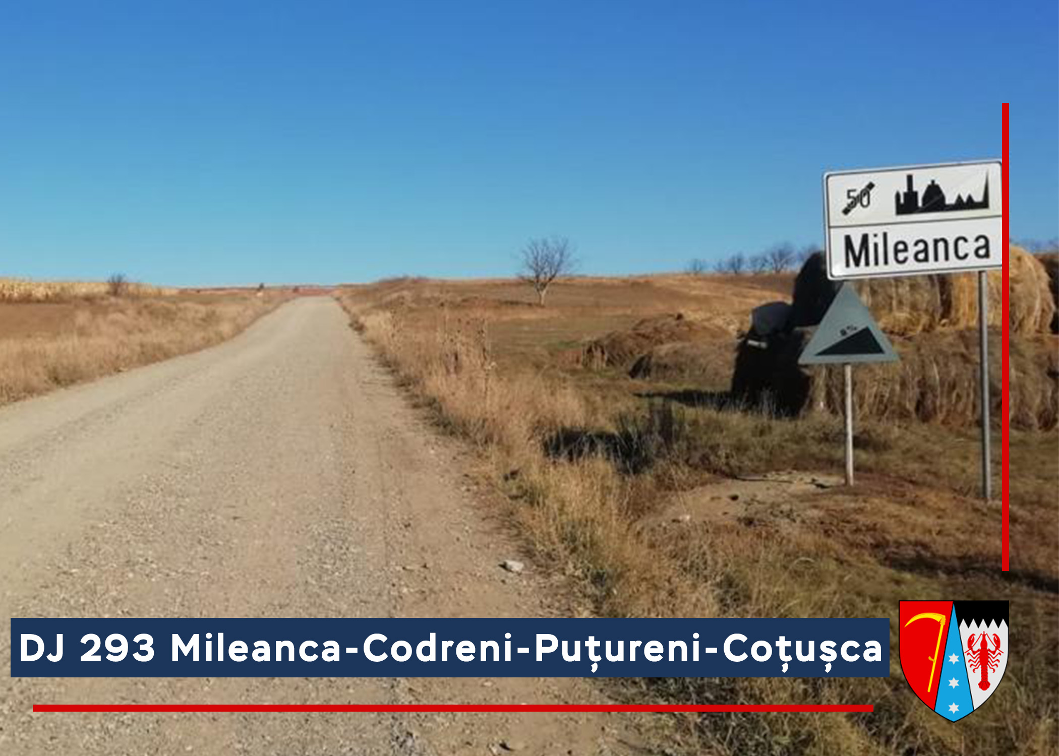 – Mileanca – Codreni – Puțureni – Coțușca (DJ 293) – 15 kilometri – valoare proiect de modernizare 77,5 milioane lei (cu TVA);