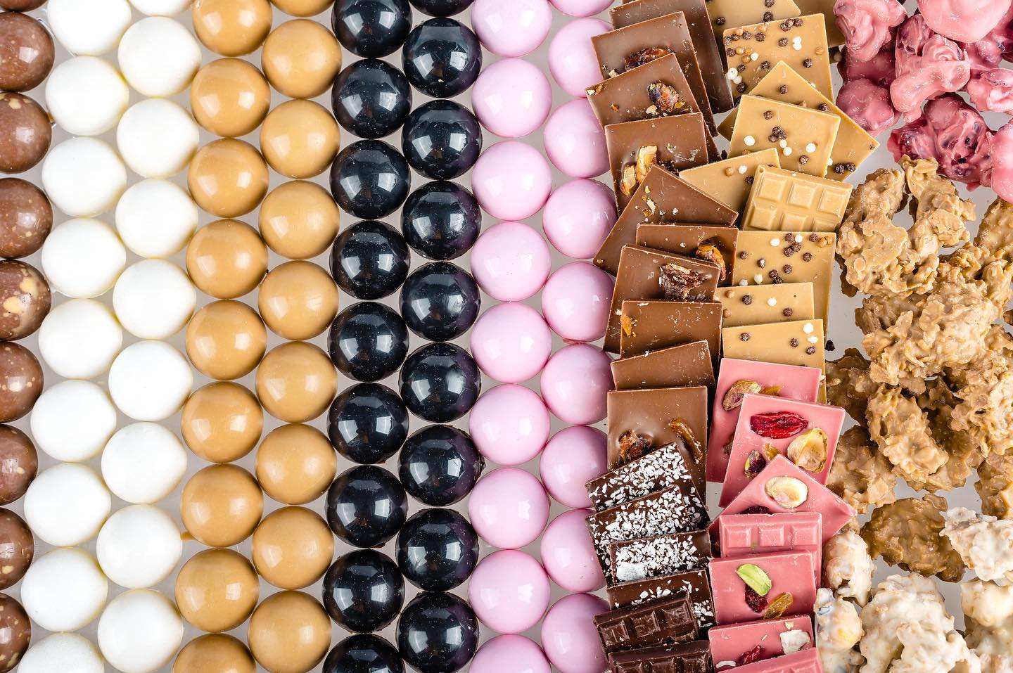 Minicioco, Praline şi Munţişori – acestea sunt numele de cod ale pieselor de rezistenţă din meniul Five Graces, devenite emblemă deja. Ele se remarcă prin design şi ambalaje simple, fără alte complicaţii, pentru că ciocolata nu are nevoie de asta. Strălucirea pralinelor se combină cu sunetul plin de satisfacţie al ciocolatei rupte, cu mirosul intens de cacao şi, în final, rezultă o combinaţie dumnezeiască între toate acestea. Firul roşu din atelierul Biancăi este diversitatea care poate fi creată cu ajutorul a cinci tipuri de ciocolată: neagră, cu lapte, gold, ruby şi albă. Iar cercetarea şi dezvoltarea nu au ajuns încă la final, ideile care stau la dospit fiind încă multe.