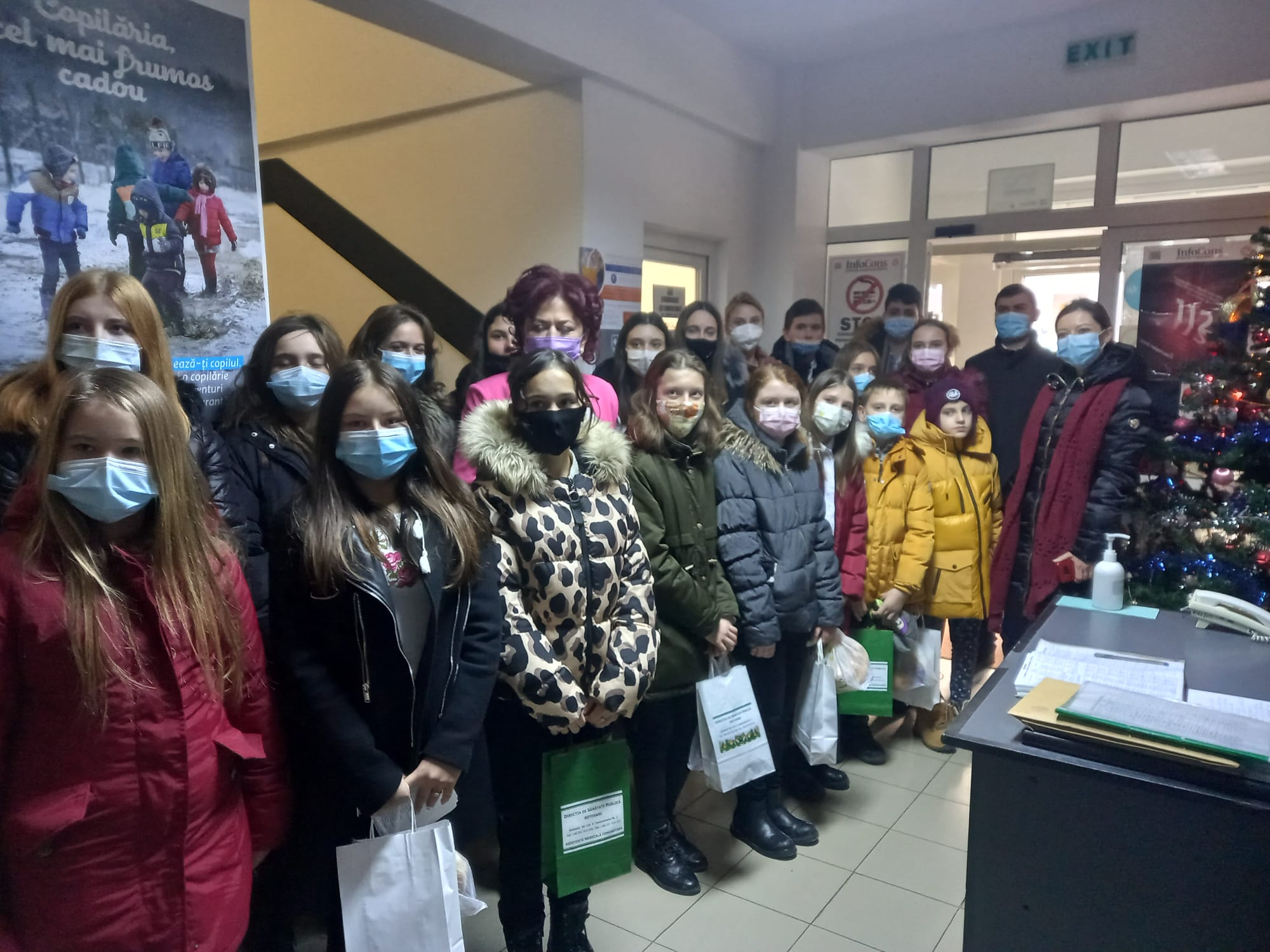 Direcția de Sănătate Publică Botoșani a primit, marți, patru grupuri de colindători din județ care au încântat angajații instituției cu colinde tradiționale românești. Astfel primul grup aparținea Colegiului Național ”AT Laurian” apoi au urmat elevii de la Drăgușeni, Pomîrla și Școala 10.