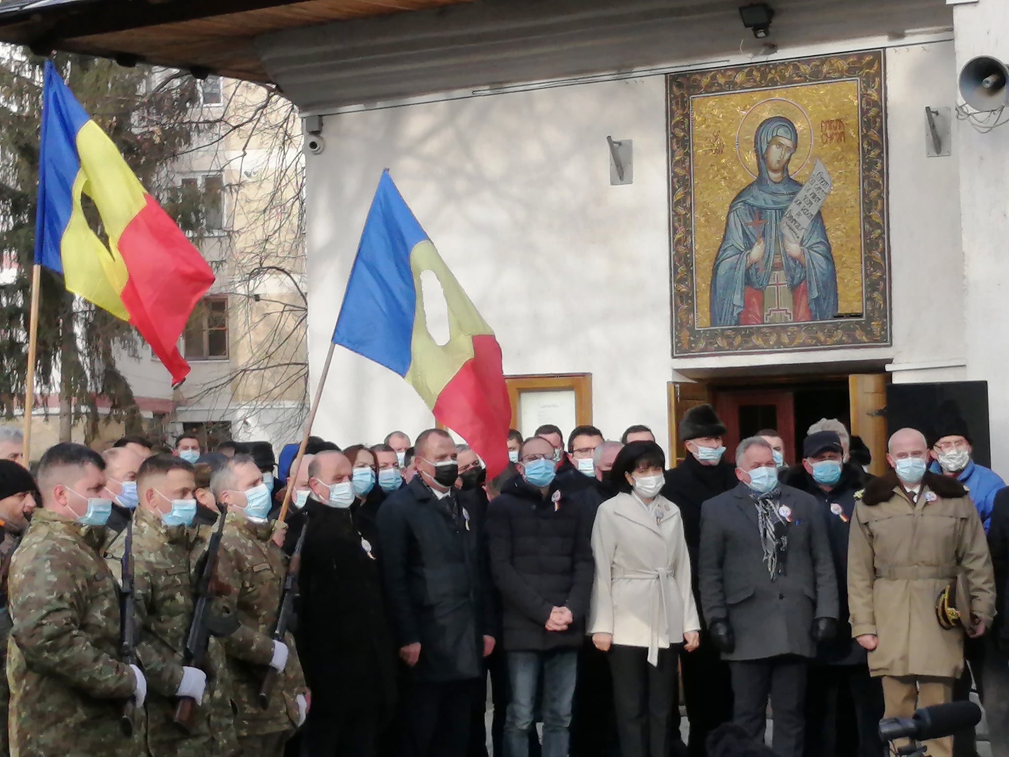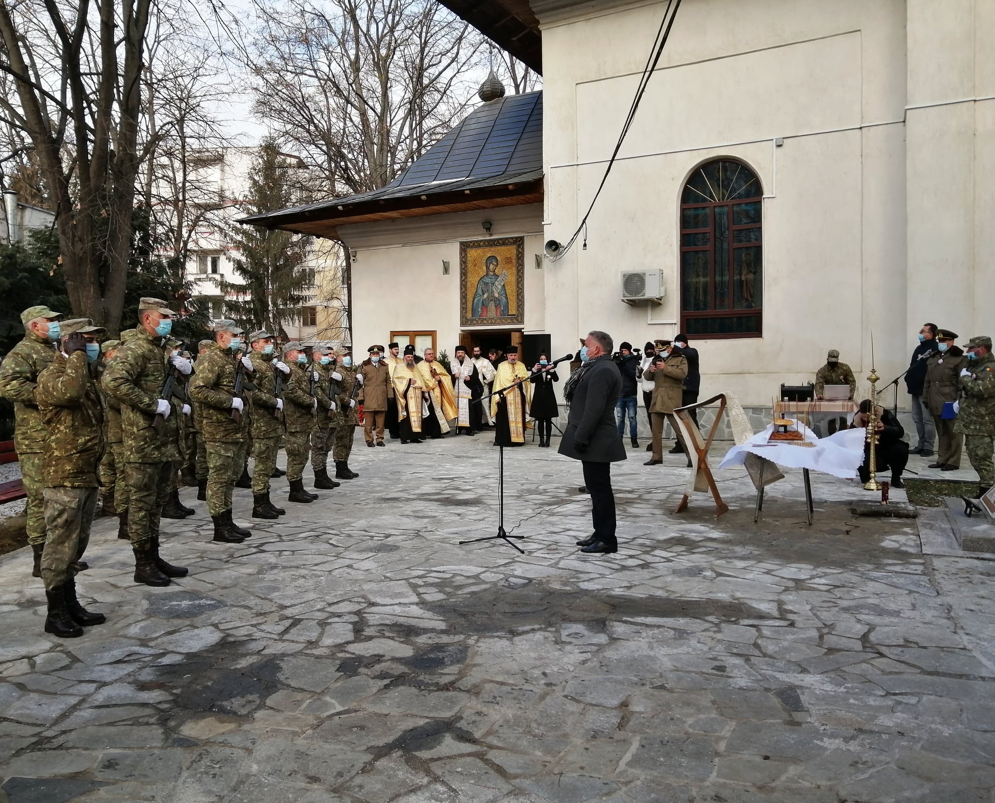 Autoritățile au depus coroane și jerbe de flori în acordurile ”Imnului Eorilor”, la Monumentul Eroilor Revoluţiei din anul 1989 de la Biserica „Cuvioasa Parascheva”.