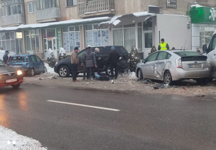 FOTO Accident cu patru mașini la Botoșani! Un tânăr de 18 a intrat cu autoturismul în trei mașini parcate