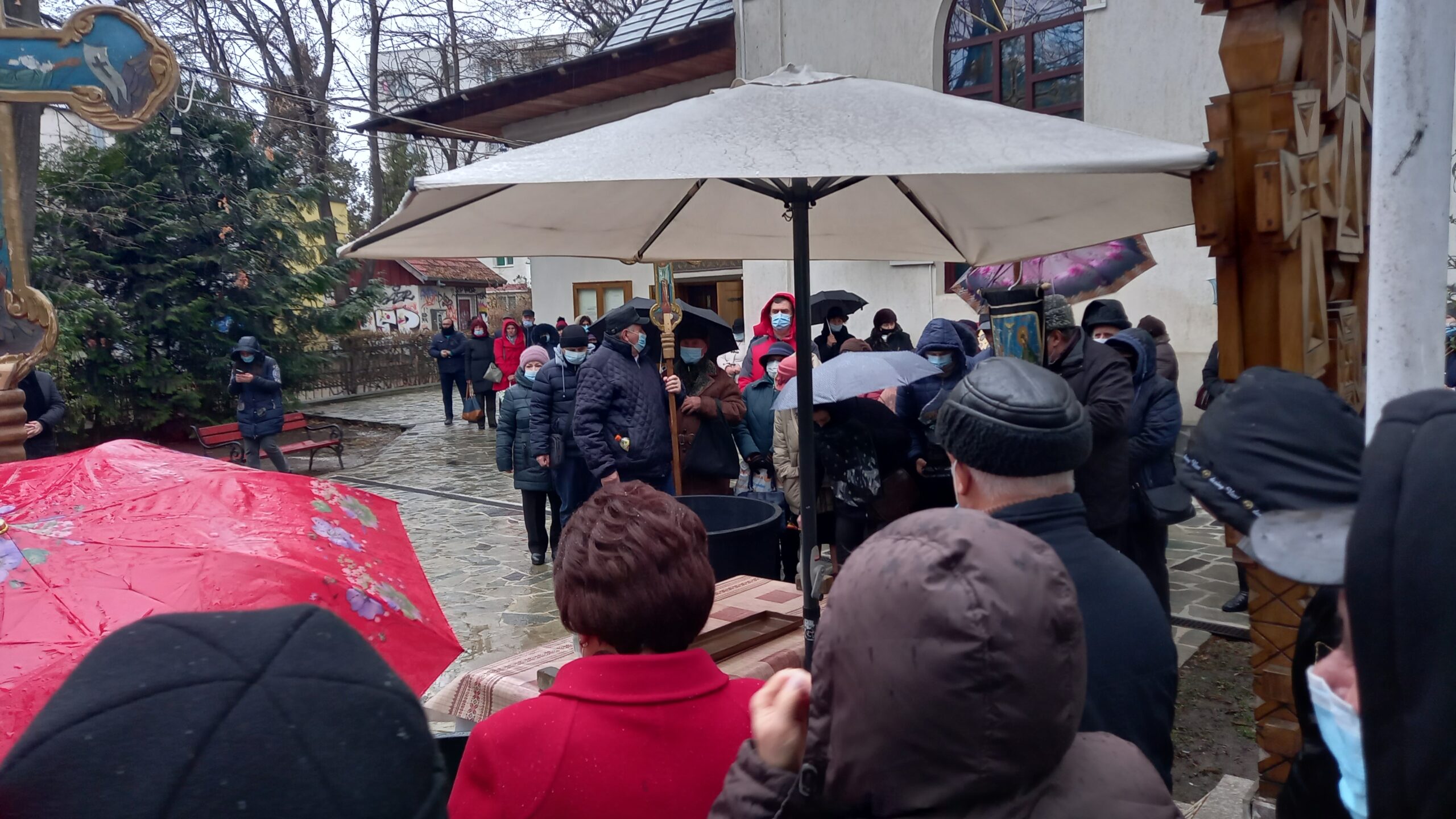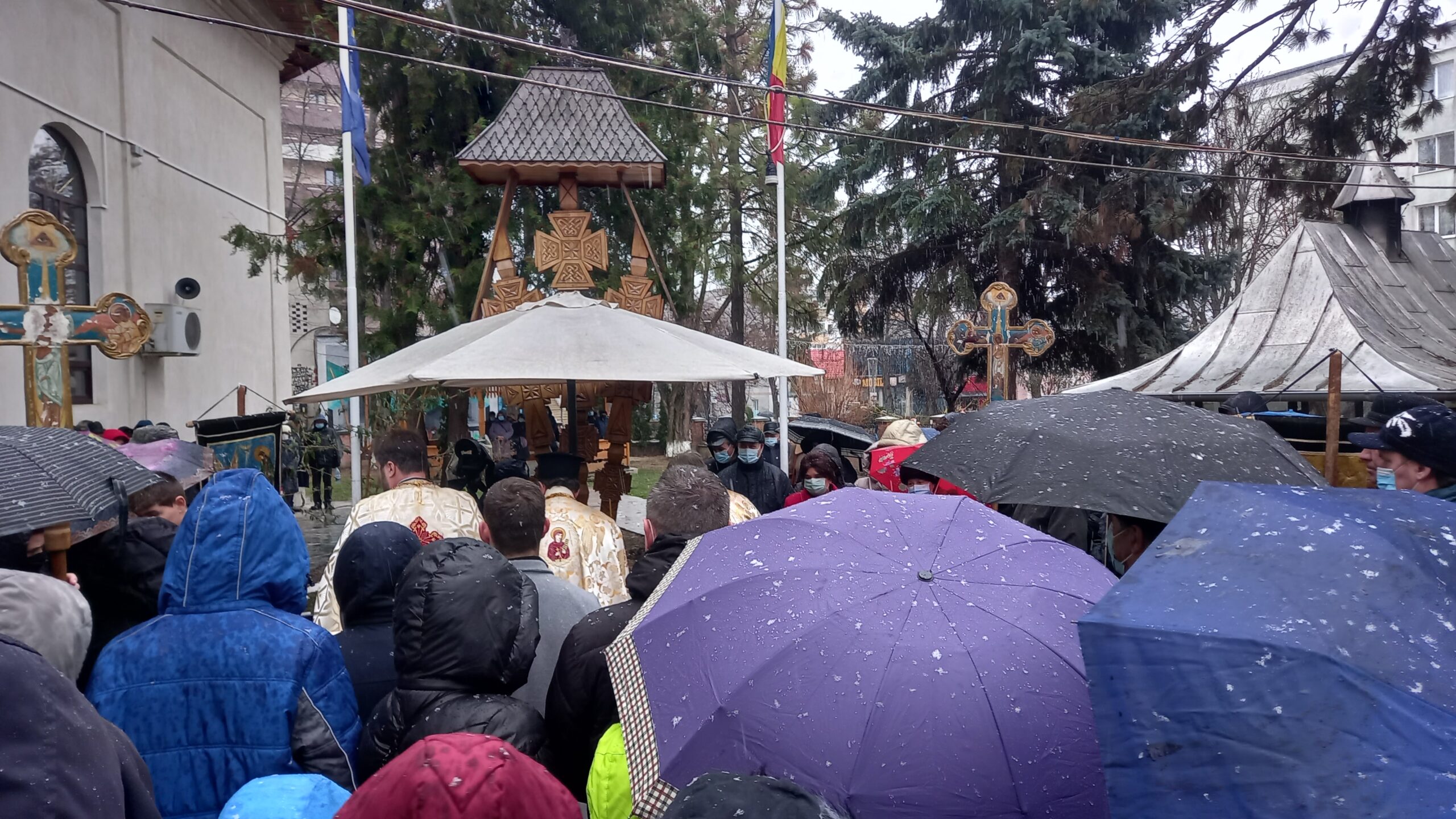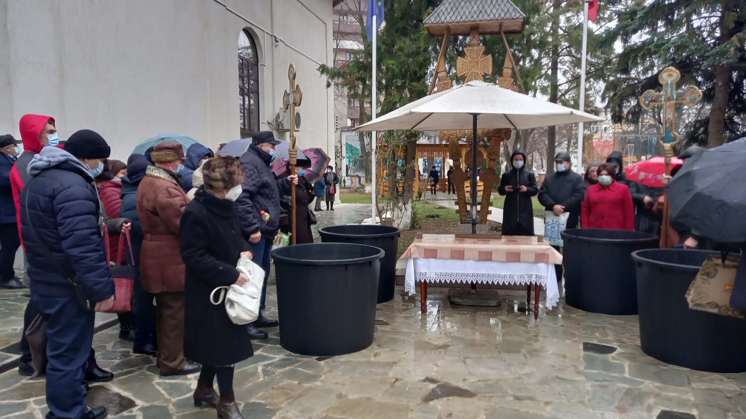 Preoţii au oficiat mai întâi Sfânta Liturghie, după care au ieşit afară şi au ţinut noi slujbe de sfinţire a apei. La Biserica Cuvioasa Parascheva au fost sute de persoane care au asistat la slujbă,