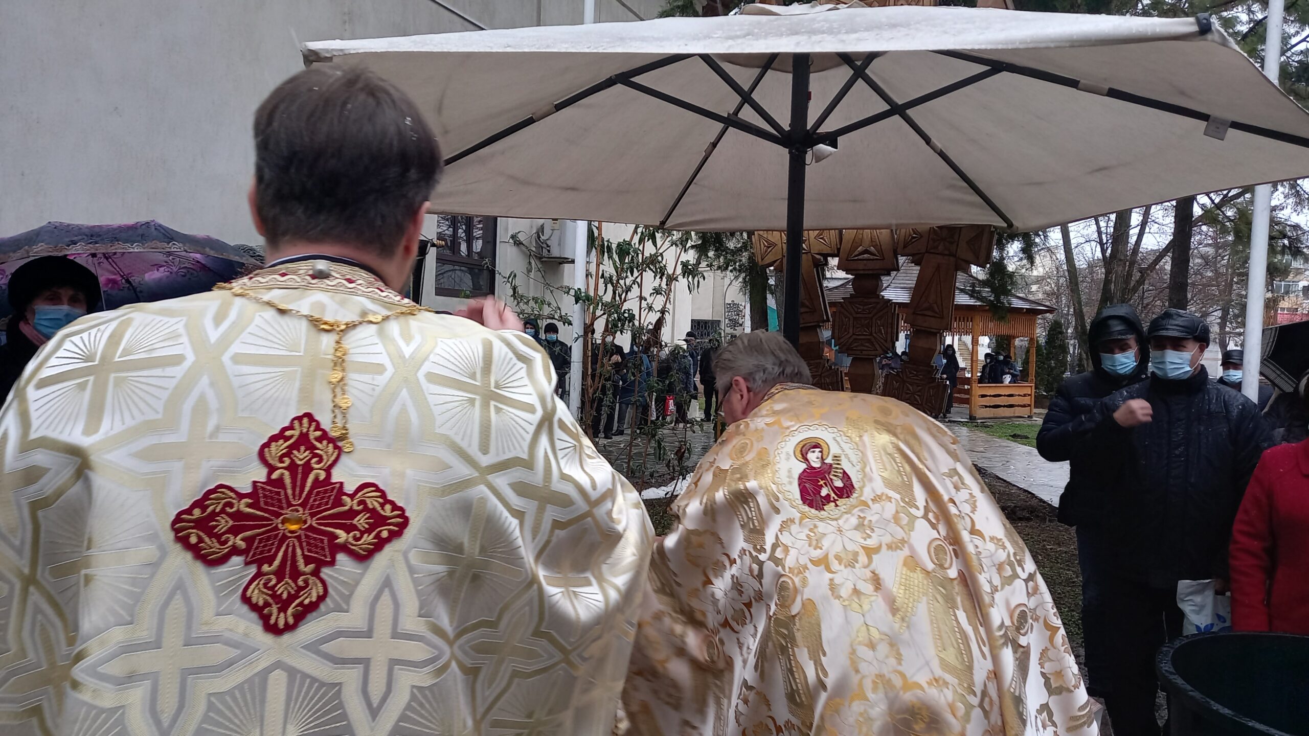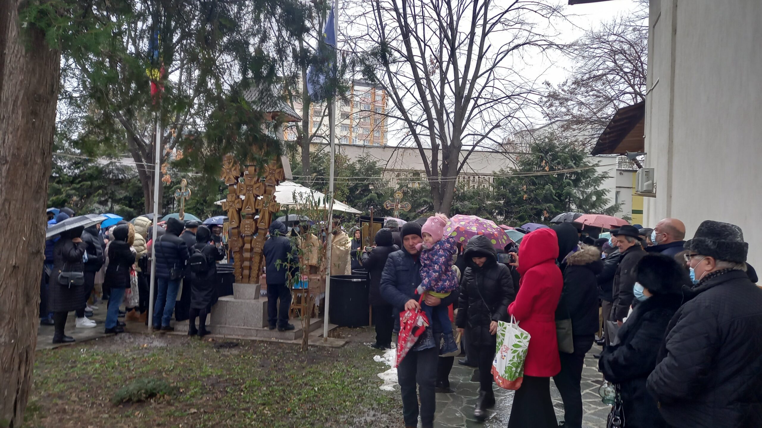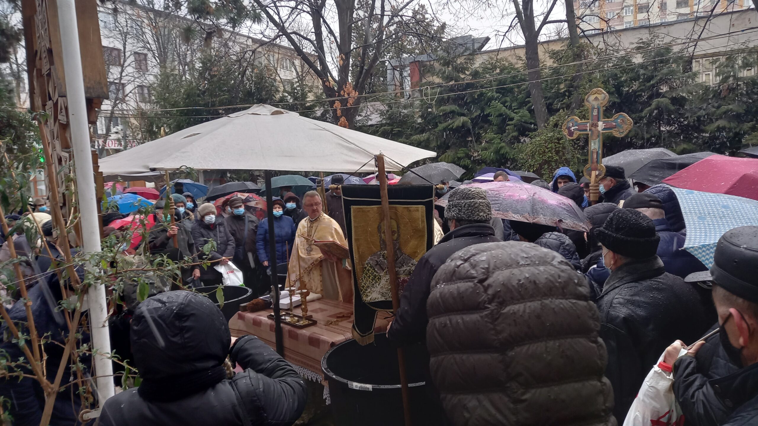 Preoţii au oficiat mai întâi Sfânta Liturghie, după care au ieşit afară şi au ţinut noi slujbe de sfinţire a apei. La Biserica Cuvioasa Parascheva au fost sute de persoane care au asistat la slujbă,