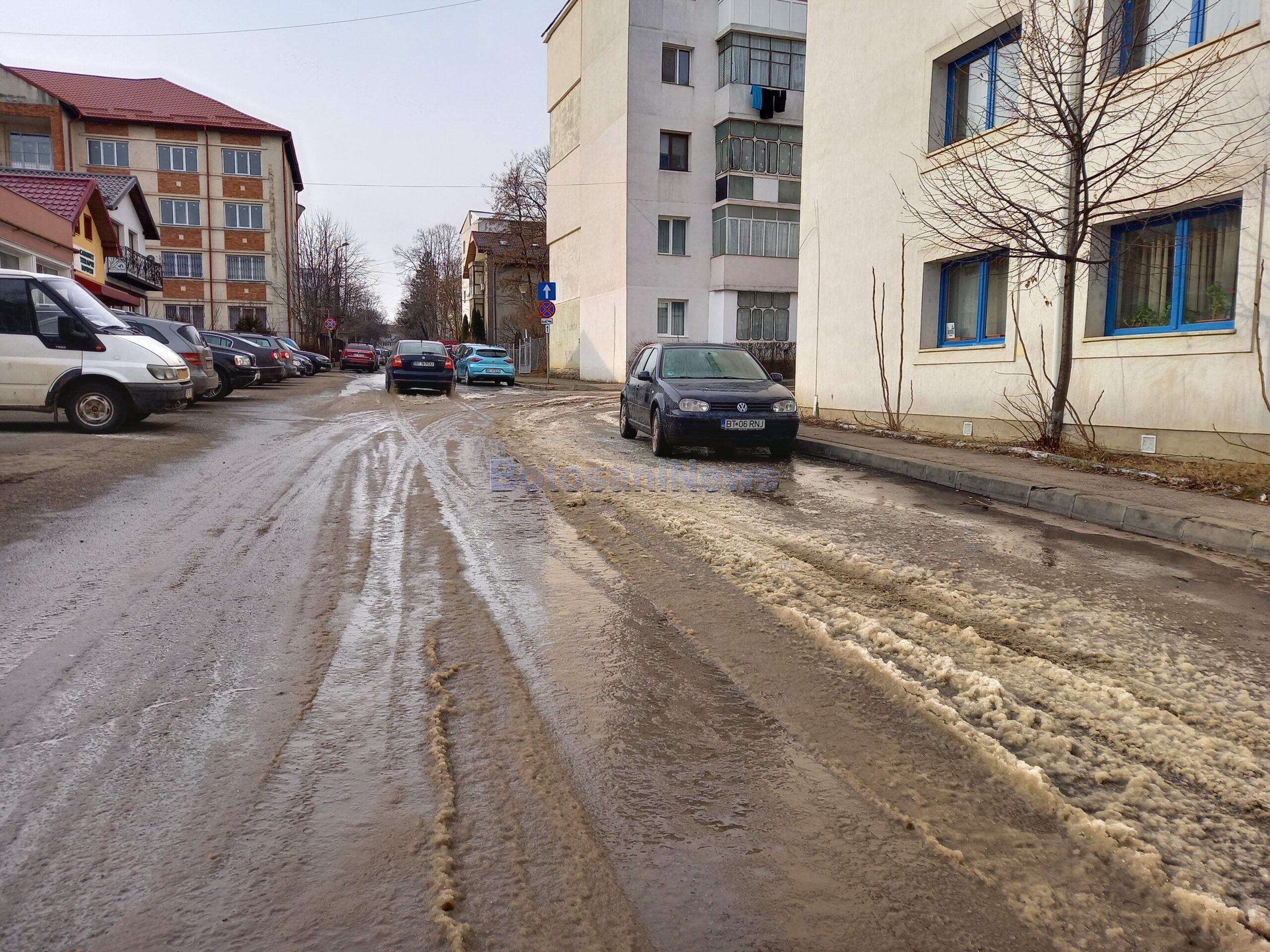 O stradă din municipiul Botoșani e plină de gheață din cauza unei avarii la rețeaua de apă, care ține de trei săptămâni. Este vorba despre strada Col. V. Tomoroveanu, pe unde șoferii, dar și pietonii trebuie să circule cu maximă prudență.