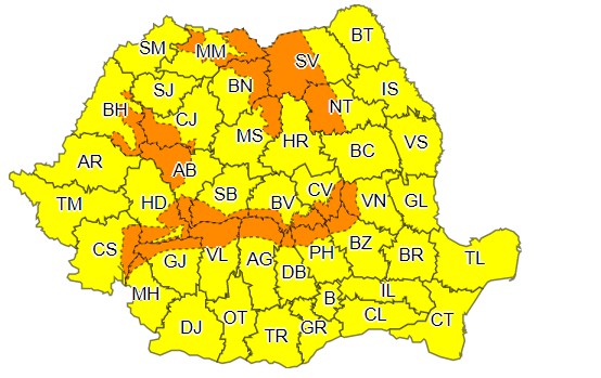 Din această după-amiază, până mâine dimineață la ora 08.00, potrivit meteorologilor, sunt prognozate ninsori moderate, iar vântul va sufla cu viteze de 65…70 km/h. Pe arii restrânse va atinge 80km/h. Marți, între orele 08:00 – 20:00, vântul va sufla cu 60…85 km/h.