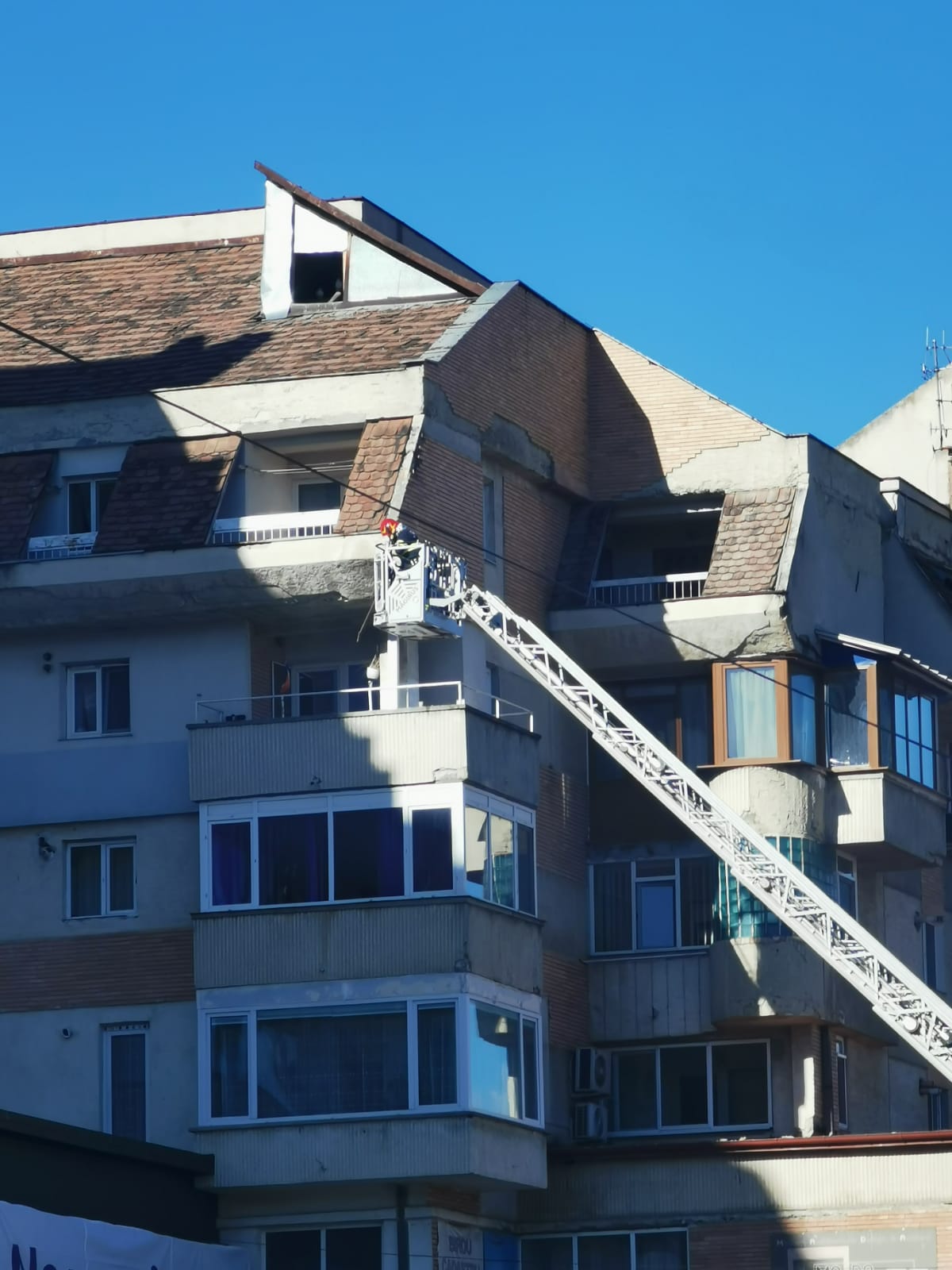 Angajații Inspectoratului Județean pentru Situații de Urgență (IJSU) Botoșani, au intervenit și au înlăturat bucățile de tencuială care se desprindeau.