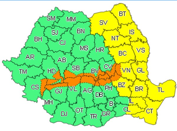 ANM informează, de asemenea, că intensificări ale vântului cu viteze în general de 50…55 km/h vor fi pe alocuri și în restul teritoriului, dar mai ales în centru și sud-vest.
