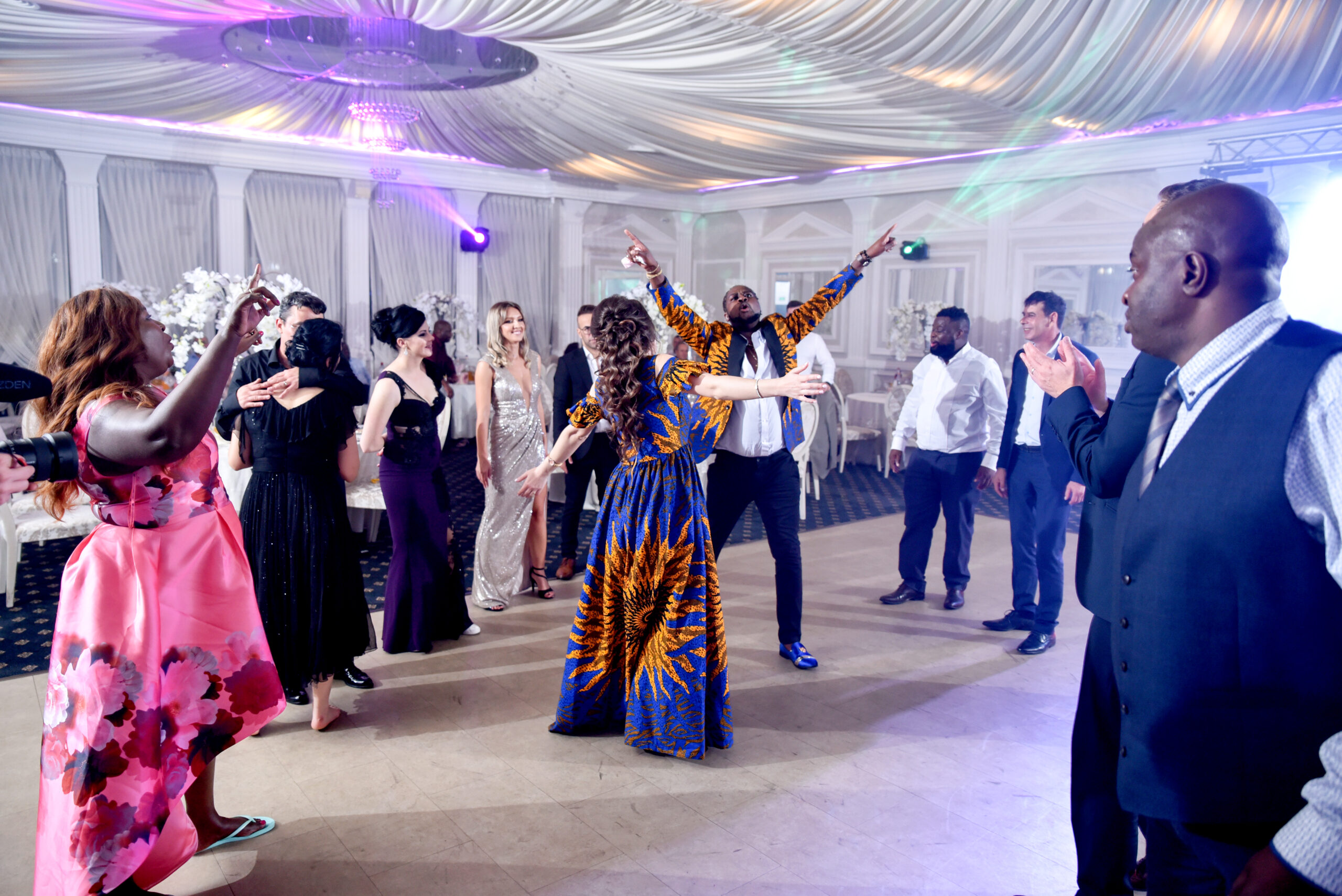La nuntă, au îmbinat muzica românească cu cea africană. Cele două familii s-au prins în hore tradiționale românești, apoi au dansat pe ritmuri africane gen „Jerusalema”.