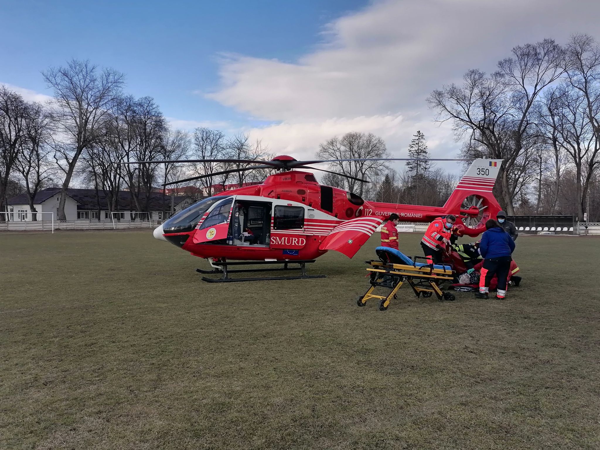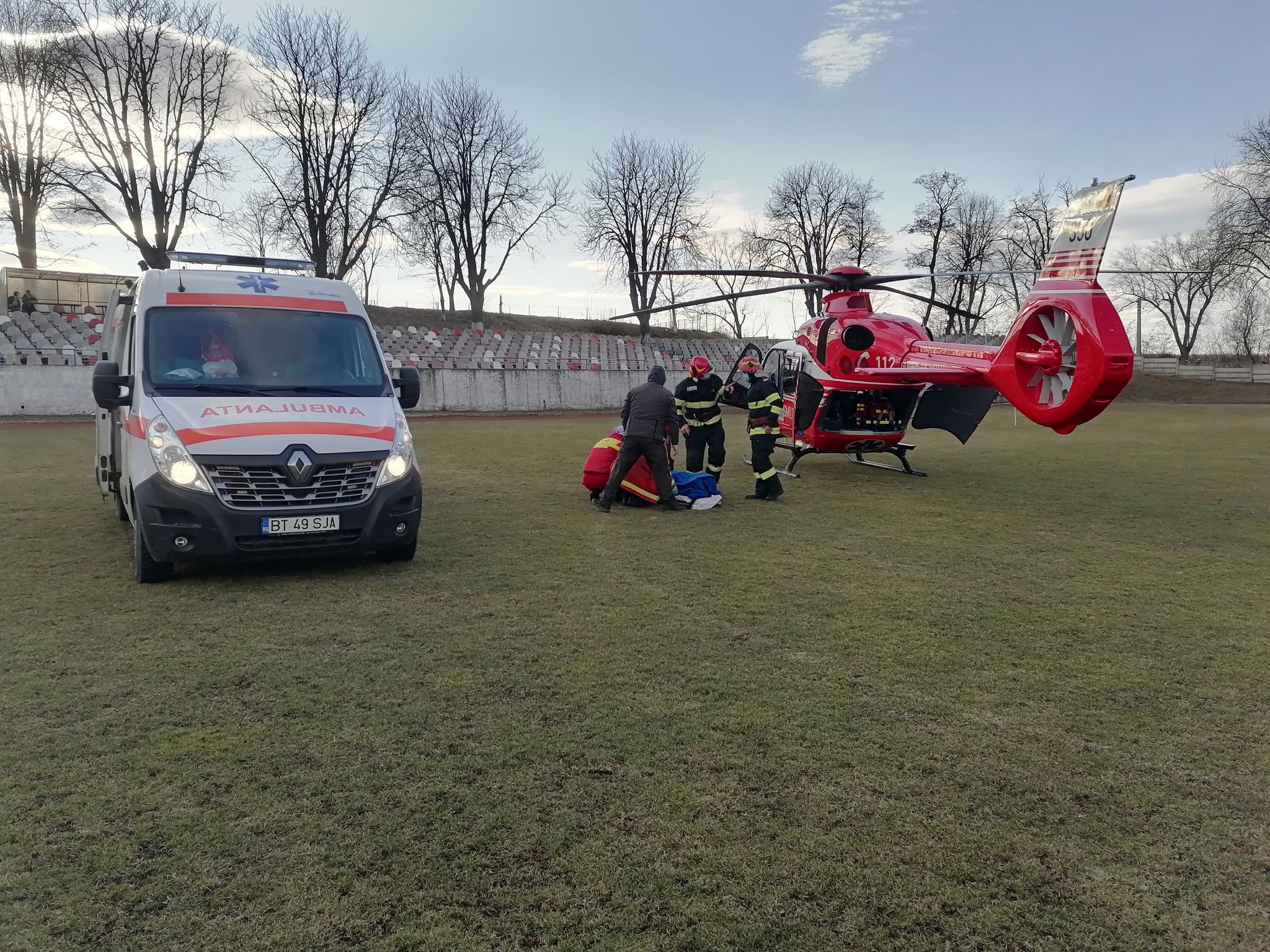 Medicii din Dorohoi au stabilit că starea femeii este gravă și că trebuie transferată la o clinică de specialitate, astfel încât au apelat la echipajul elicopterului SMURD. Aparatul de zbor a aterizat pe Stadionul Municipal din Dorohoi, acolo unde Detașamentul de Pompieri din Dorohoi a asigurat măsuri PSI cu prilejul aterizării și decolării.