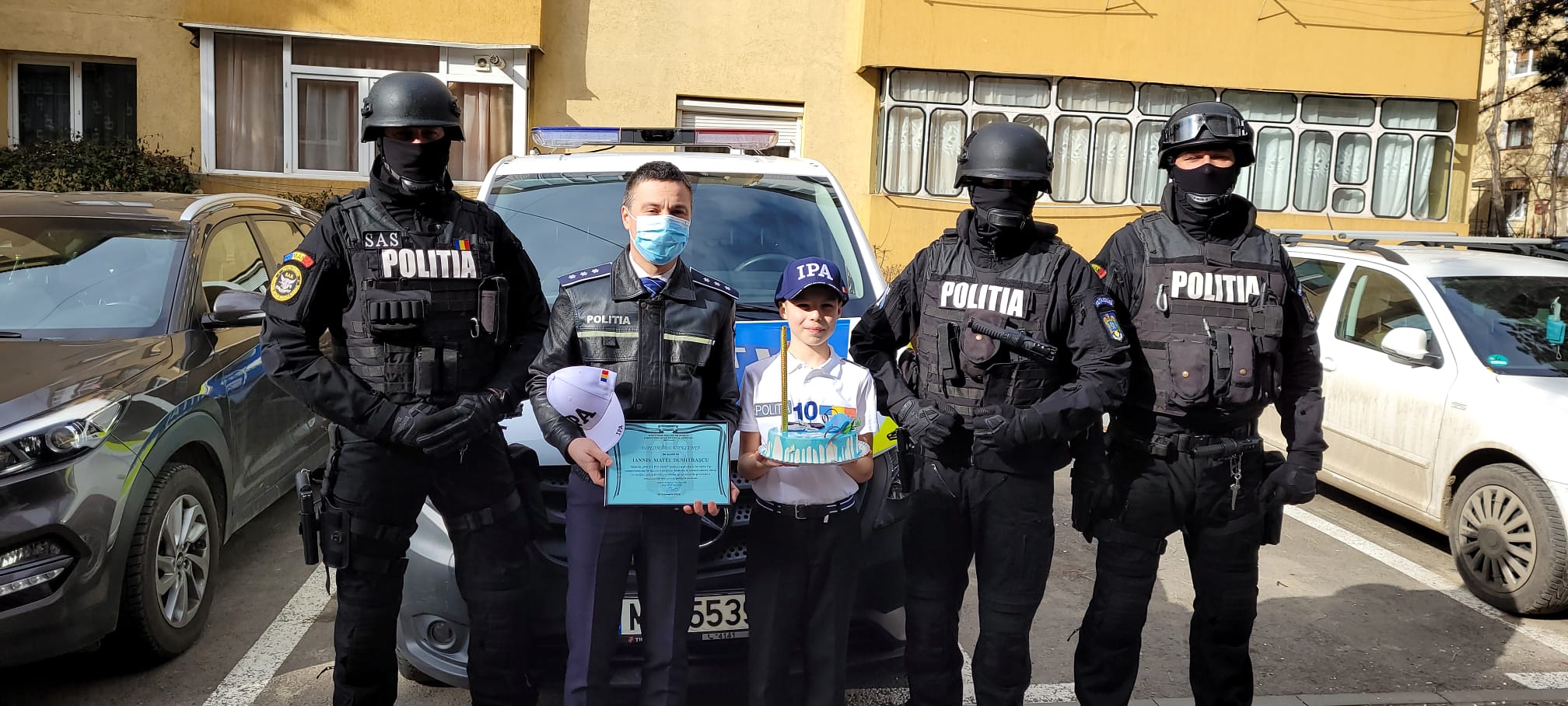 Polițiștii suceveni i-au făcut o surpriză unui copil, pe care nu o va uita toată viața. Iannis Matei Dumitrașcu este un băiat din cartierul Burdujeni care sâmbătă a împlinit 10 ani. În plus, este un elev de nota 10 a cărui dorință este de a deveni polițist. Ieri și-a organizat ziua de naștere cu câțiva colegi și învățătoarea sa.