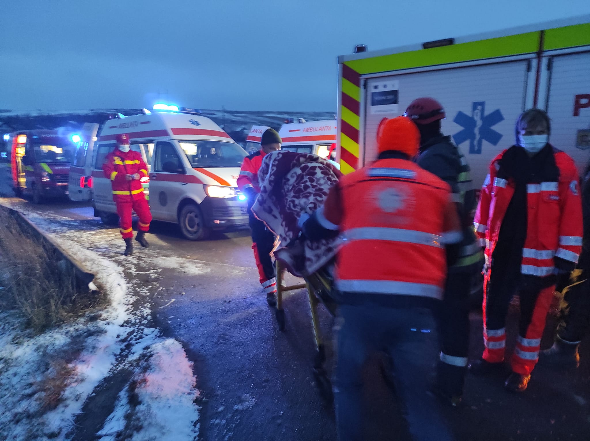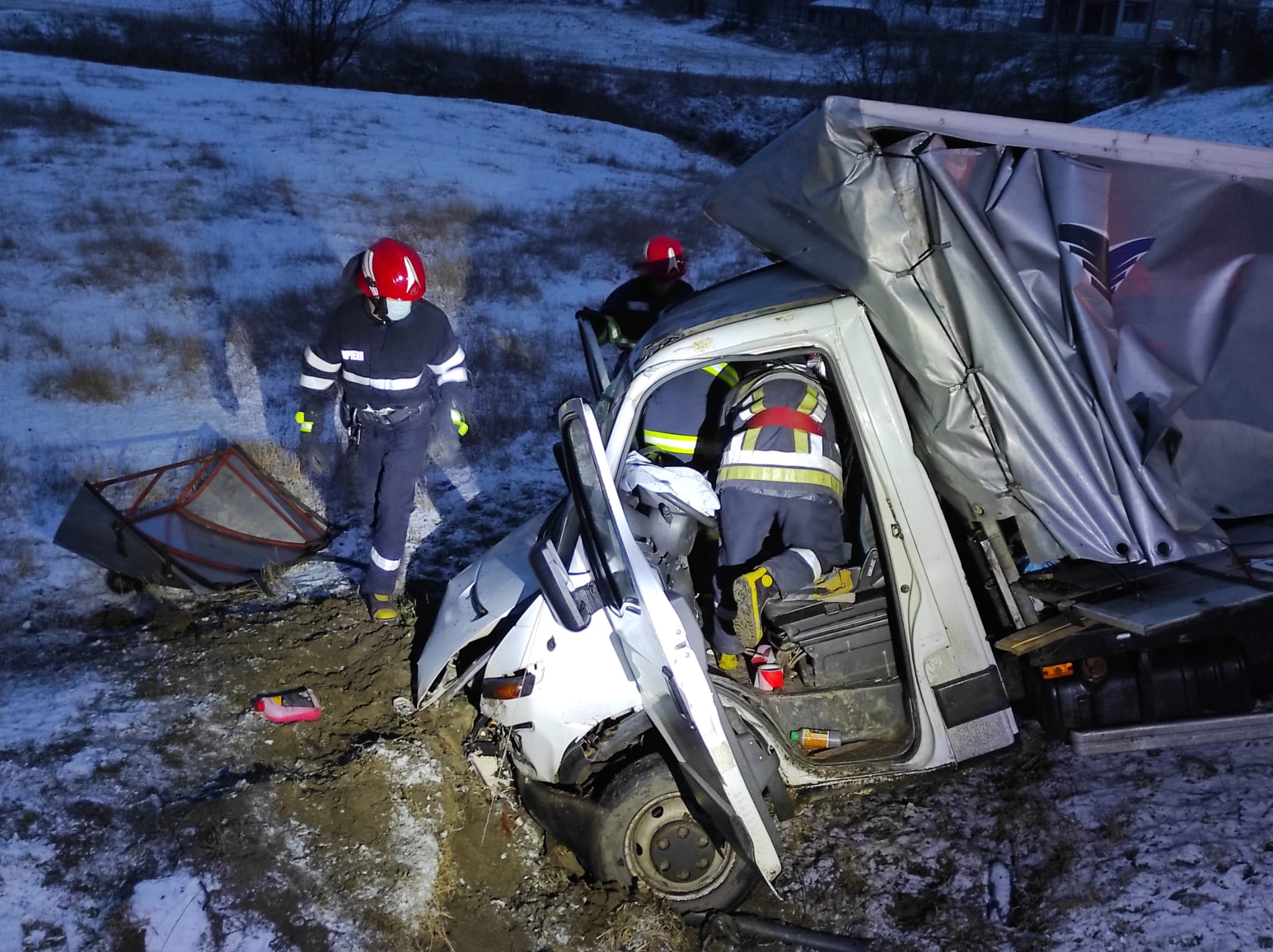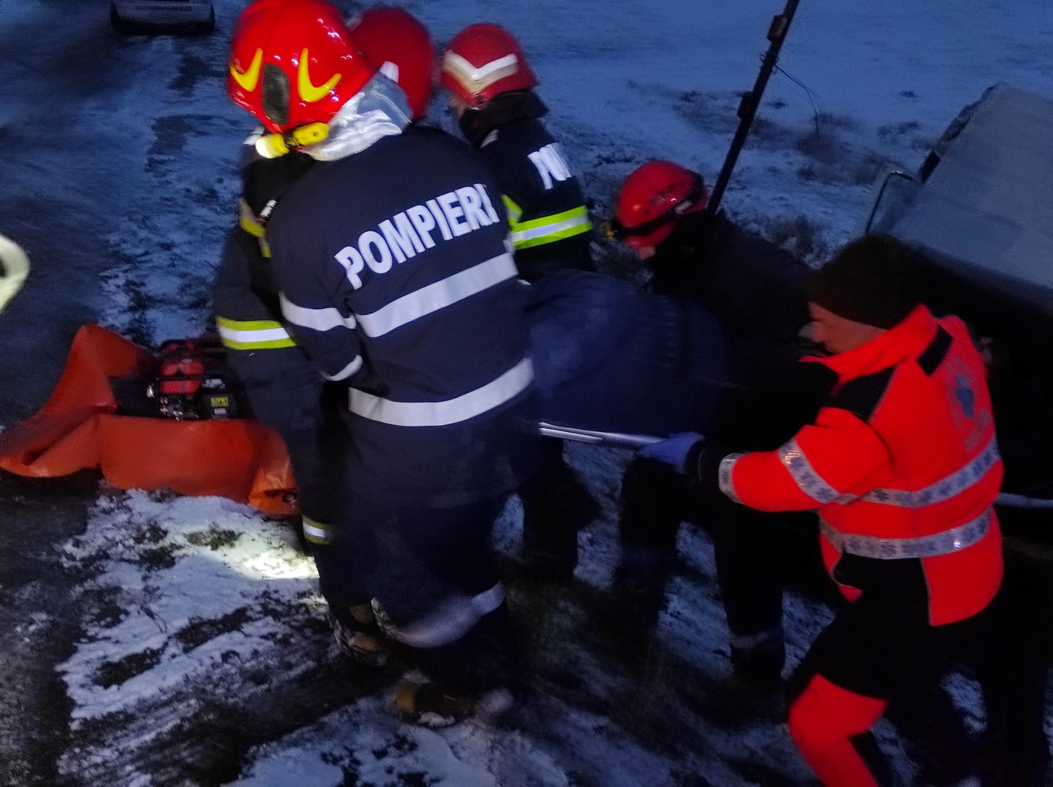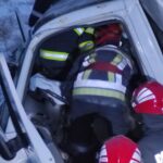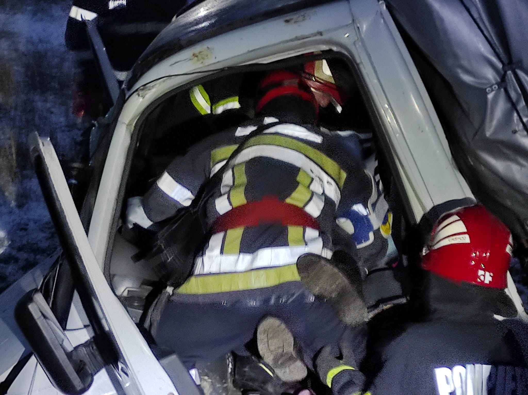 Conducătorul autoturismului a ieșit singur din mașină. Ceilalți doi pasageri, de 66 și 40 de ani, au fost scoși de pompieri din autoutilitară. Aceștia erau conștienți și au fost preluați de echipajele SAJ și transportați la spital.
