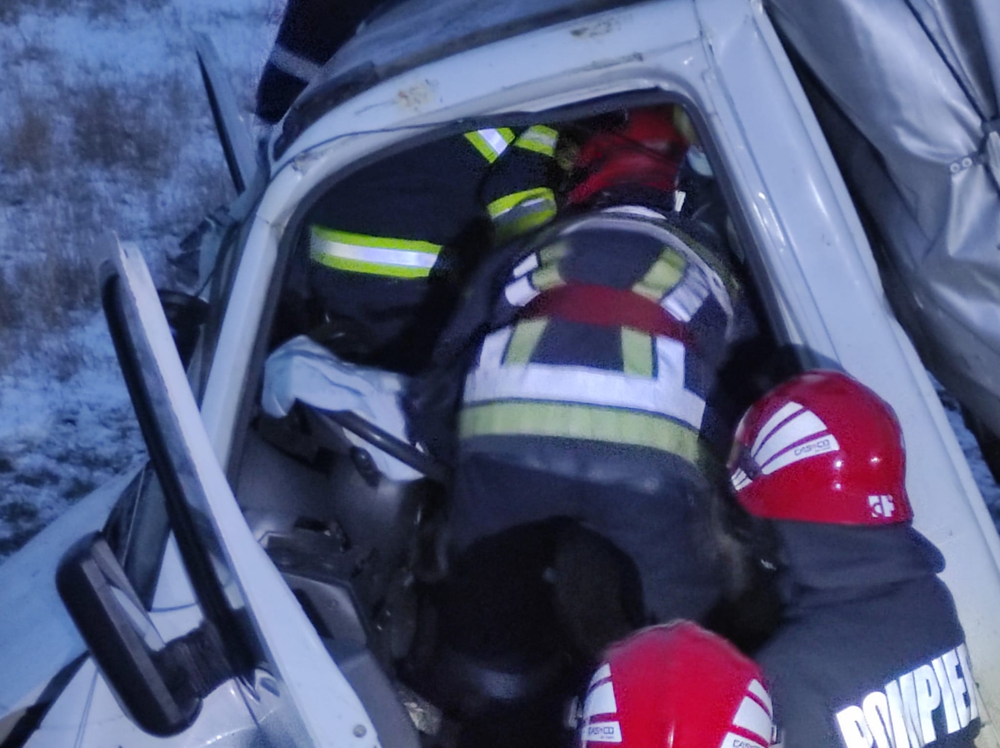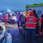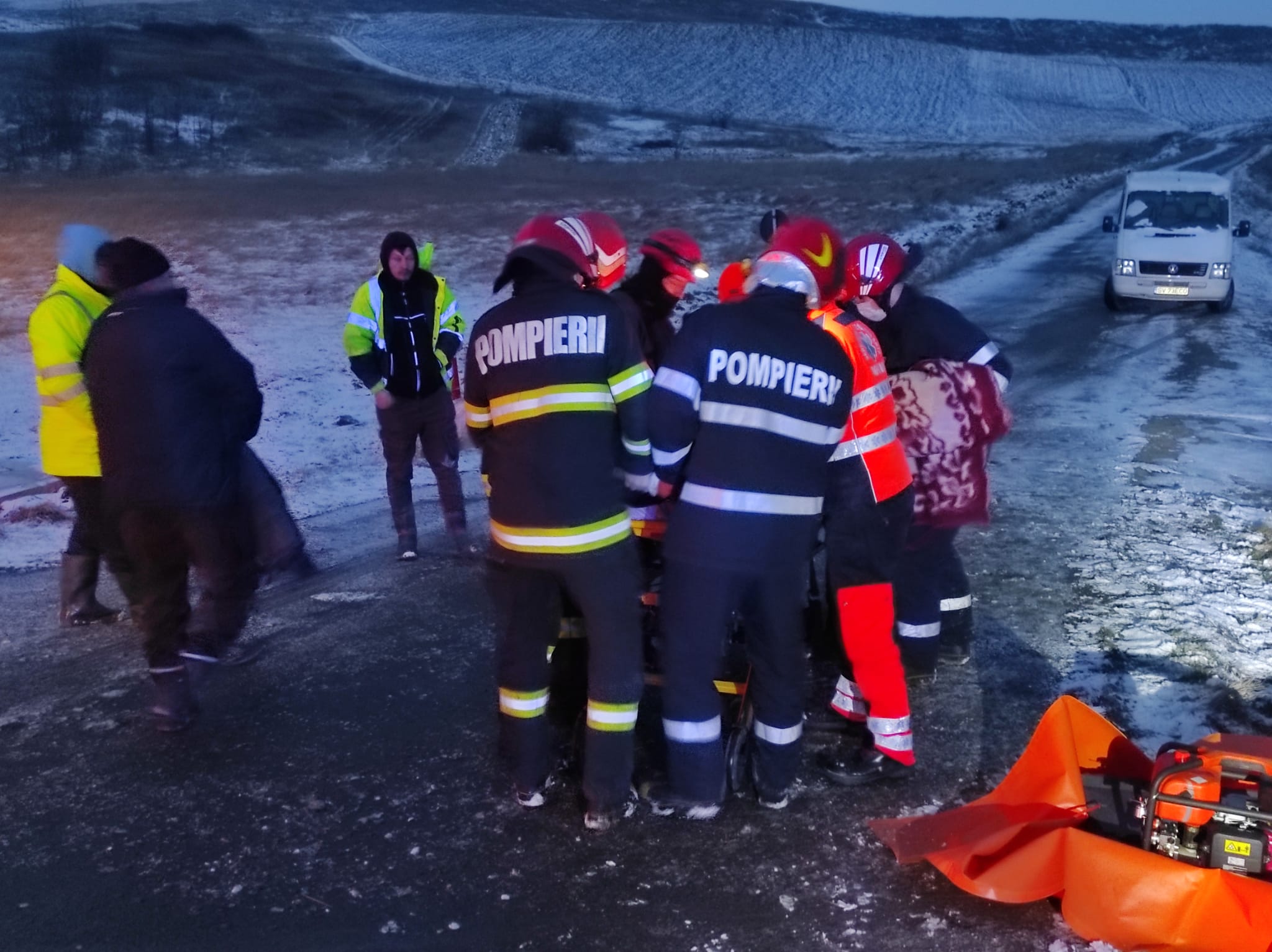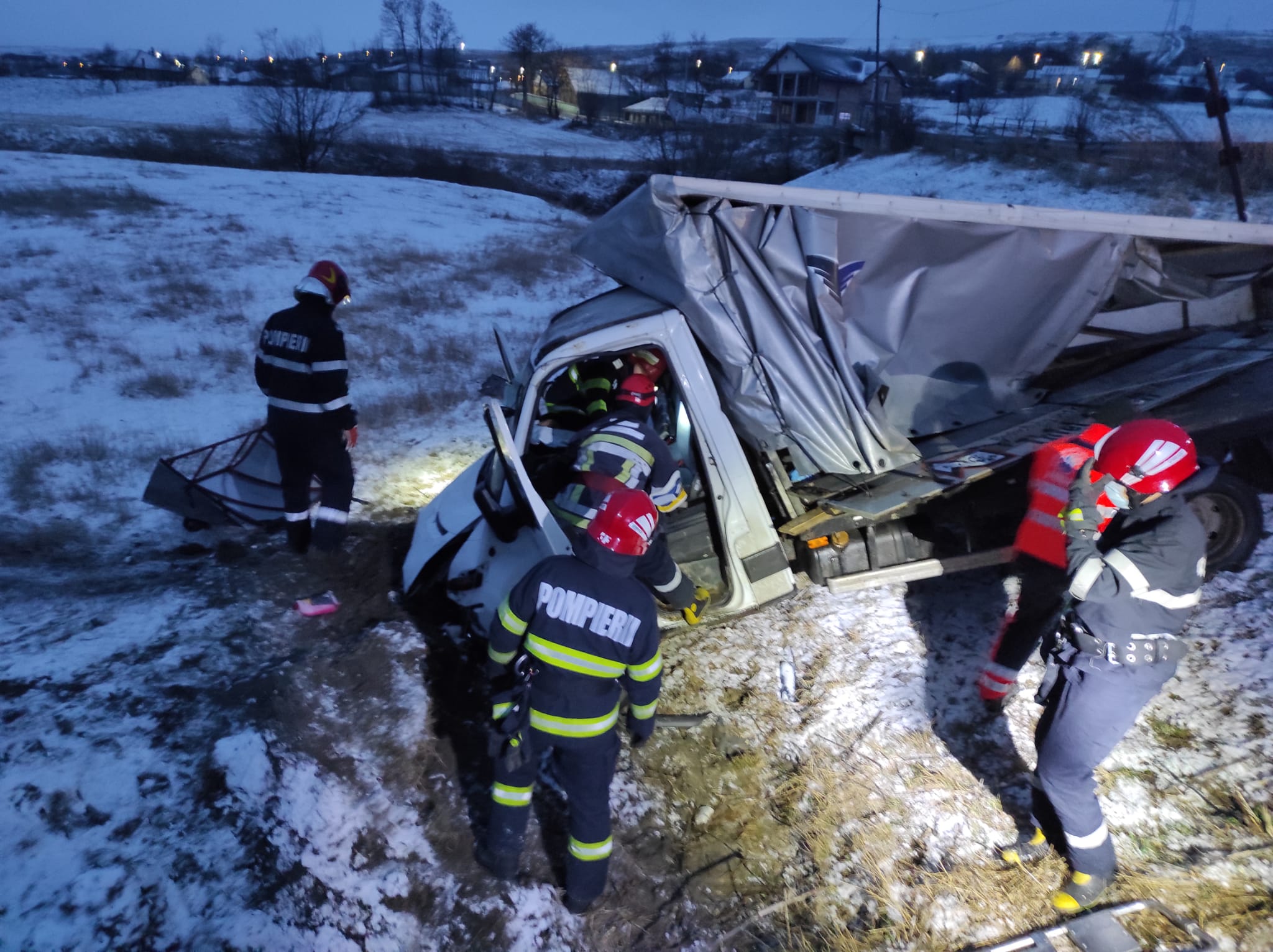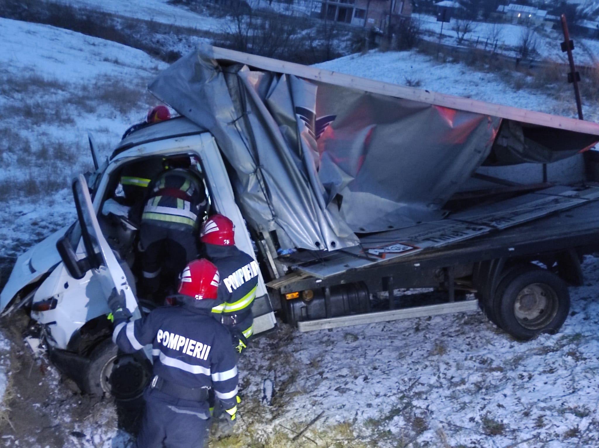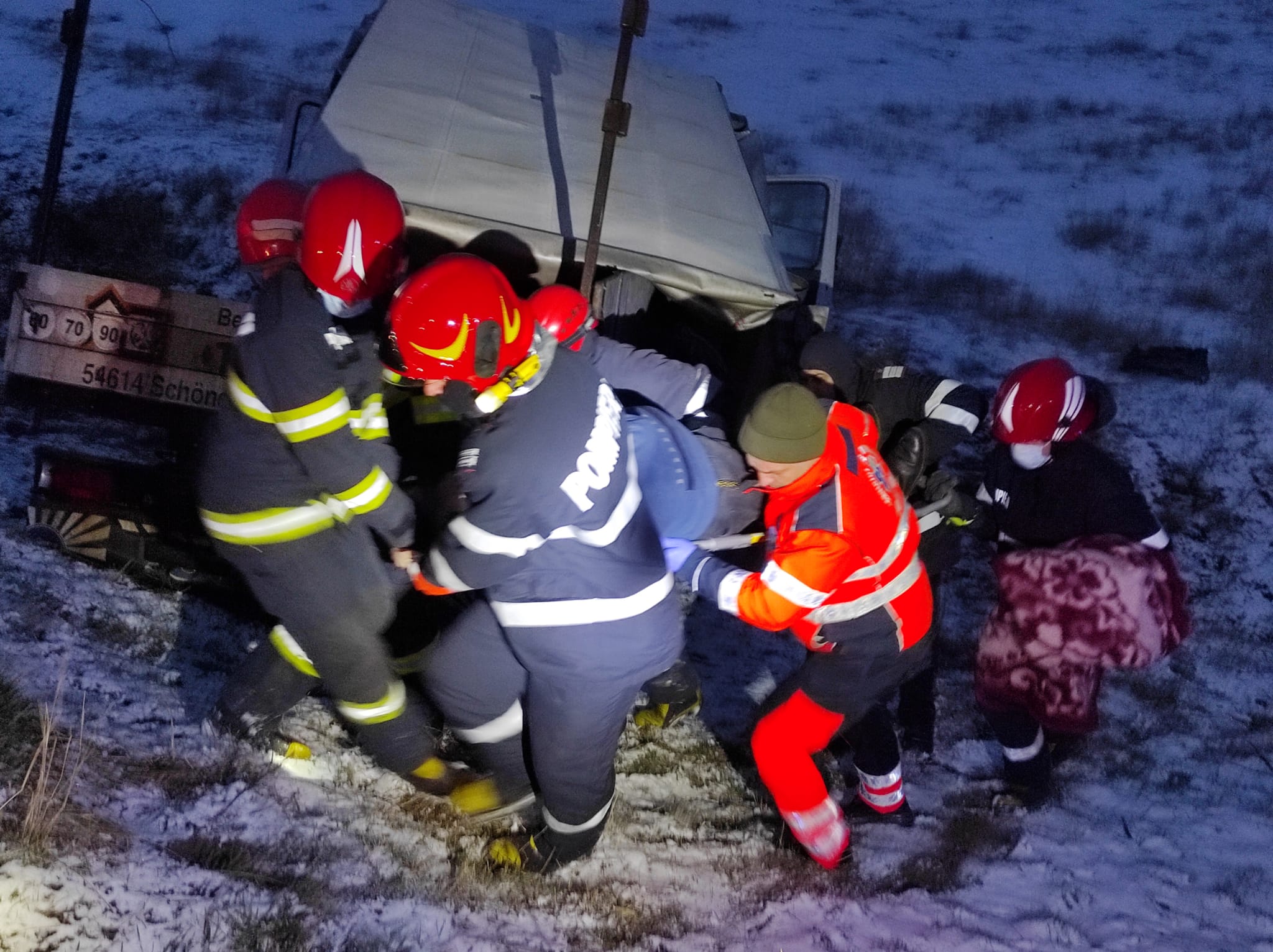 Conducătorul autoturismului a ieșit singur din mașină. Ceilalți doi pasageri, de 66 și 40 de ani, au fost scoși de pompieri din autoutilitară. Aceștia erau conștienți și au fost preluați de echipajele SAJ și transportați la spital.
