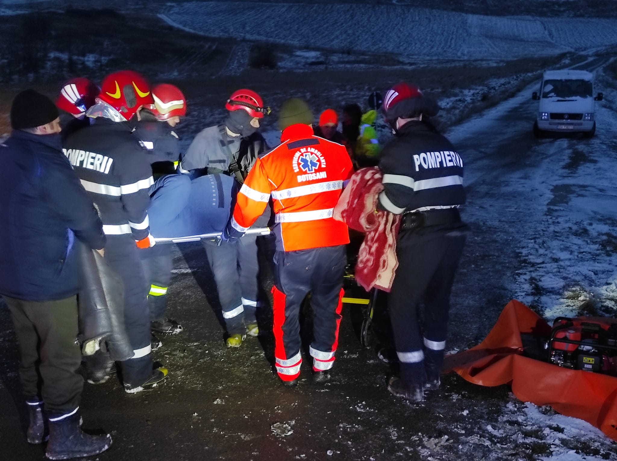 La fața locului s-au deplasat pompierii din cadrul Detașamentului Botoșani, cu o autospecială de descarcerare, o autospecială de stingere, echipajul de terapie intensivă mobilă SMURD și două ambulanțe ale Serviciului Județean de Ambulanță, potrivit reprezentanților Inspectoratului Județean pentru Situații de Urgență (IJSU) Botoșani.