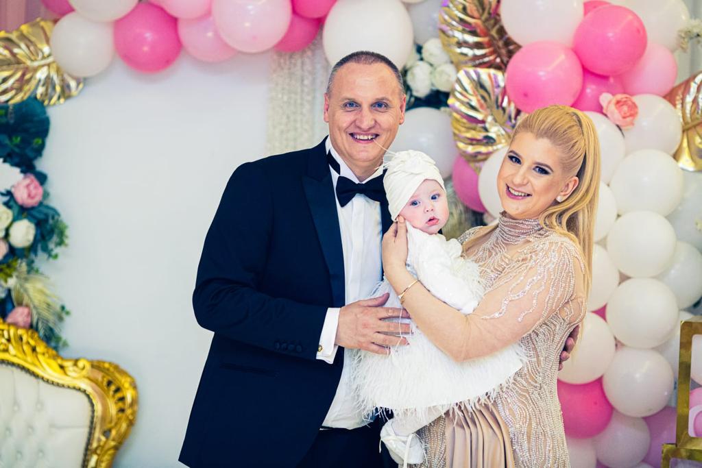 La creștinarea micuței au fost rudele și prietenii apropiați. Nașii fetiței au fost doi oameni de afaceri din Iași.