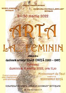 Muzeul Judeţean Botoşani găzduiește, în perioada 2-30 martie 2022, expoziția ,,Arta la… femininˮ, ediția a III-a, deschisă la Galeriile de Artă ,,Ștefan Luchianˮ Botoșani.