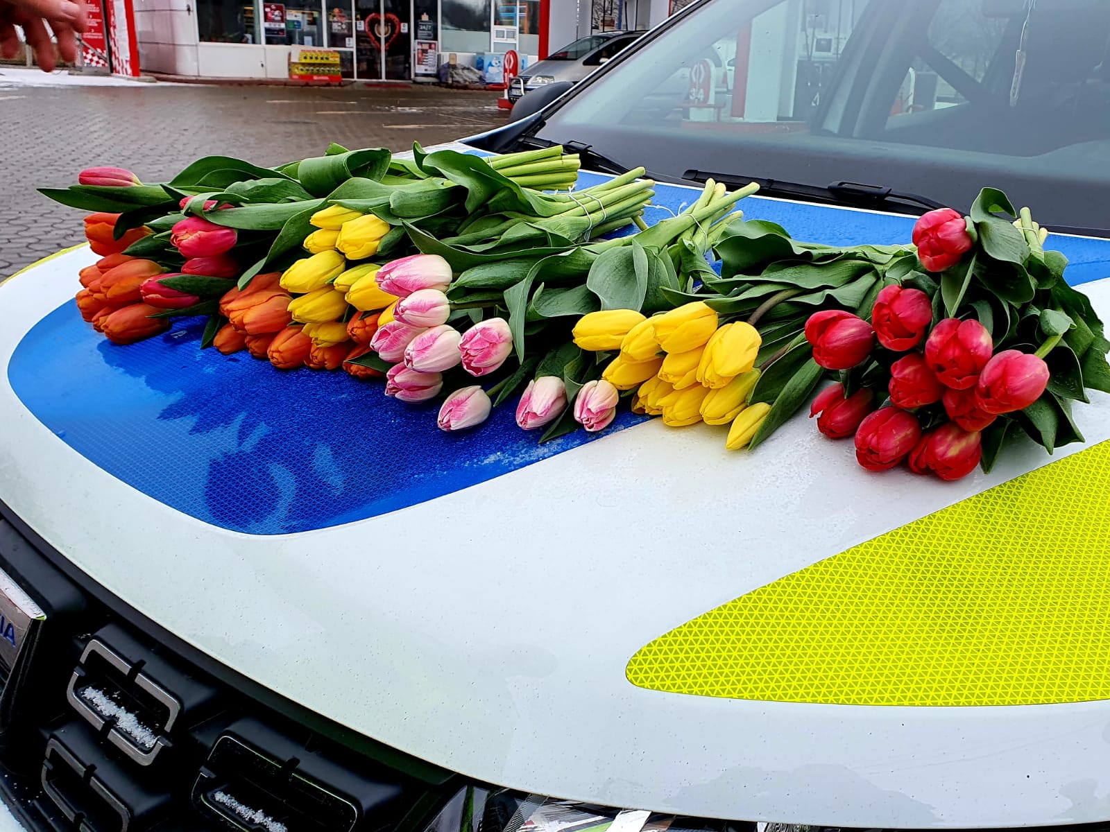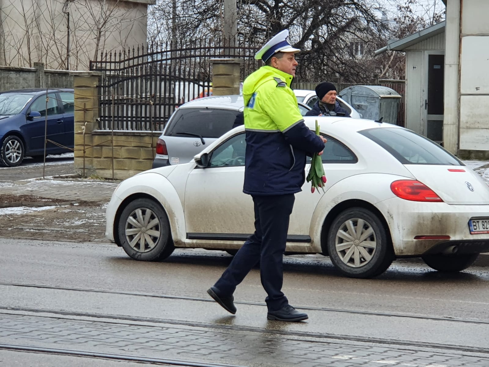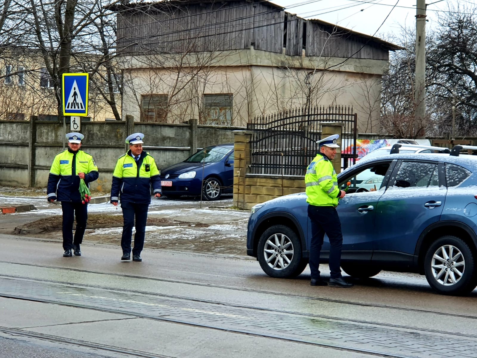 Având în vedere că este 8 Martie - Ziua Femeii, pe lângă sfaturi preventive și recomandări, polițiștii au oferit flori doamnelor și domnișoarelor participante la traficul rutier.
