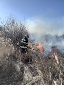 La această oră, și pompierii din Dorohoi intervin pentru stingerea unui incendiu care a cuprins vegetația uscată de pe un câmp din Horlaceni.