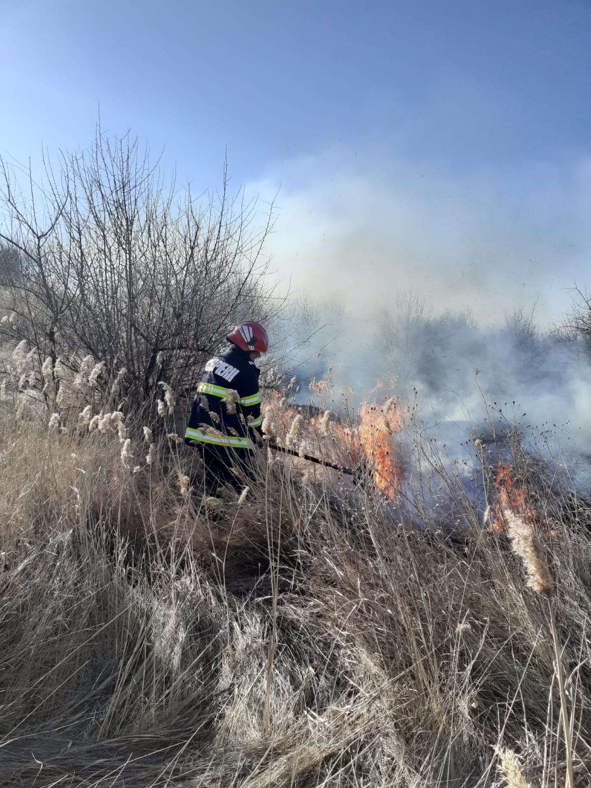 La această oră, și pompierii din Dorohoi intervin pentru stingerea unui incendiu care a cuprins vegetația uscată de pe un câmp din Horlaceni.