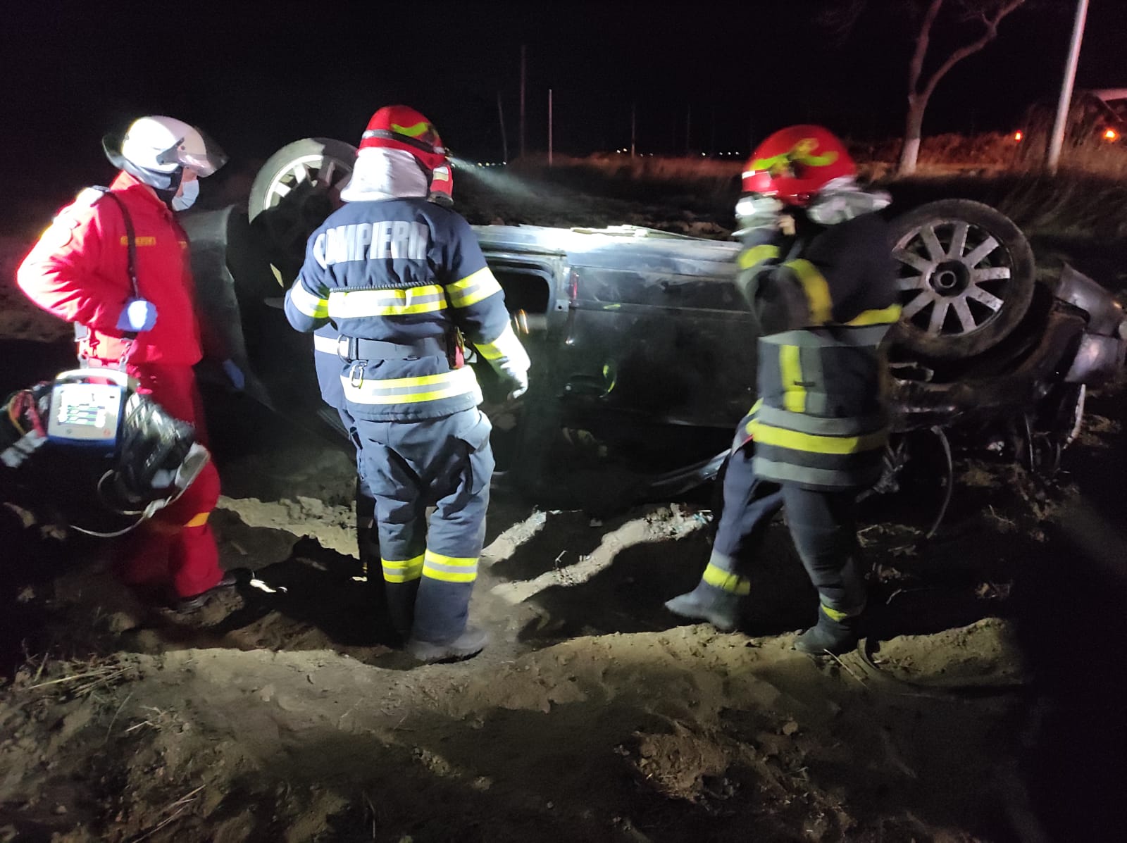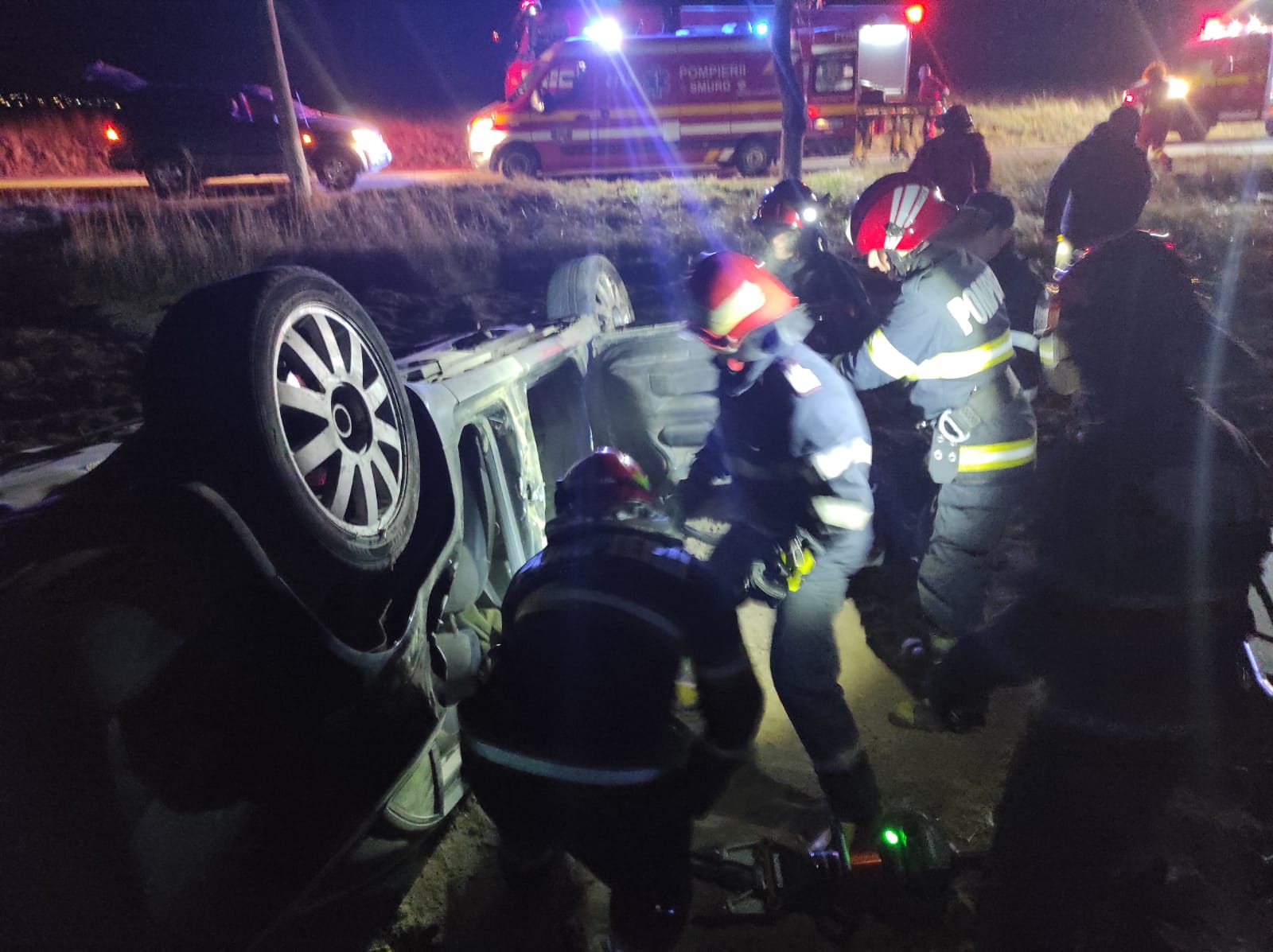 Pompierii au constatat că șoferul era încarcerat, dar conștient. Acesta a fost extras din autoturism cu ajutorul accesoriilor de descarcerare, fiind preluat de echipajul TIM – SMURD și transportat la spital pentru îngrijiri medicale de specialitate. Pompierii au intervenit și pentru înlăturarea pericolului de incendiu, fiind deconectate bornele bateriei.