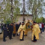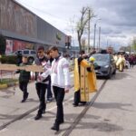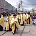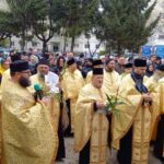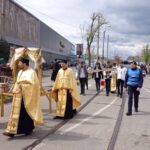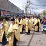 Un preot a stropit cu agheasmă pe toți cei prezenți, dar și pe străzile din municipiu, iar pe străzi a fost purtată și icoana cu Intrarea Domnului în Ierusalim.