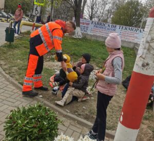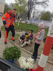 Gest emoționat făcut în Vinerea Patimilor de angajații Serviciului Județean de Ambulanță Botoșani pentru o femeie cu trei copii. Aceasta vindea flori, pe iarbă, alături de copiii ei, iar angajații de la Ambulanță i-au oferit pături noi și mai multe produse.