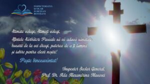 Mesajul de Paște al inspectorului general al Inspectoratului Școlar, Ada Macovei, adresat cadrelor didacticeDistribuie:WhatsAppTweetTelegramReddit 23 aprilie 202223 aprilie 2022 Stimate colege, stimați colegi, Sfintele Sărbători Pascale să vă aducă sănătate, bucurii de la cei dragi, puterea de a fi lumină și iubire pentru elevii noștri! Paște binecuvântat! Inspector Școlar General Prof. Dr. Ada Alexandrina Macovei Distribuie:WhatsAppTweetTelegramReddit